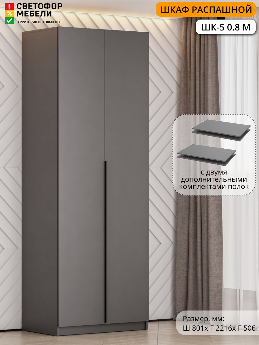 Шкаф распашной Мебельный рай ШК 5 0.8 м с полками 801х2216х506, Графит информация: