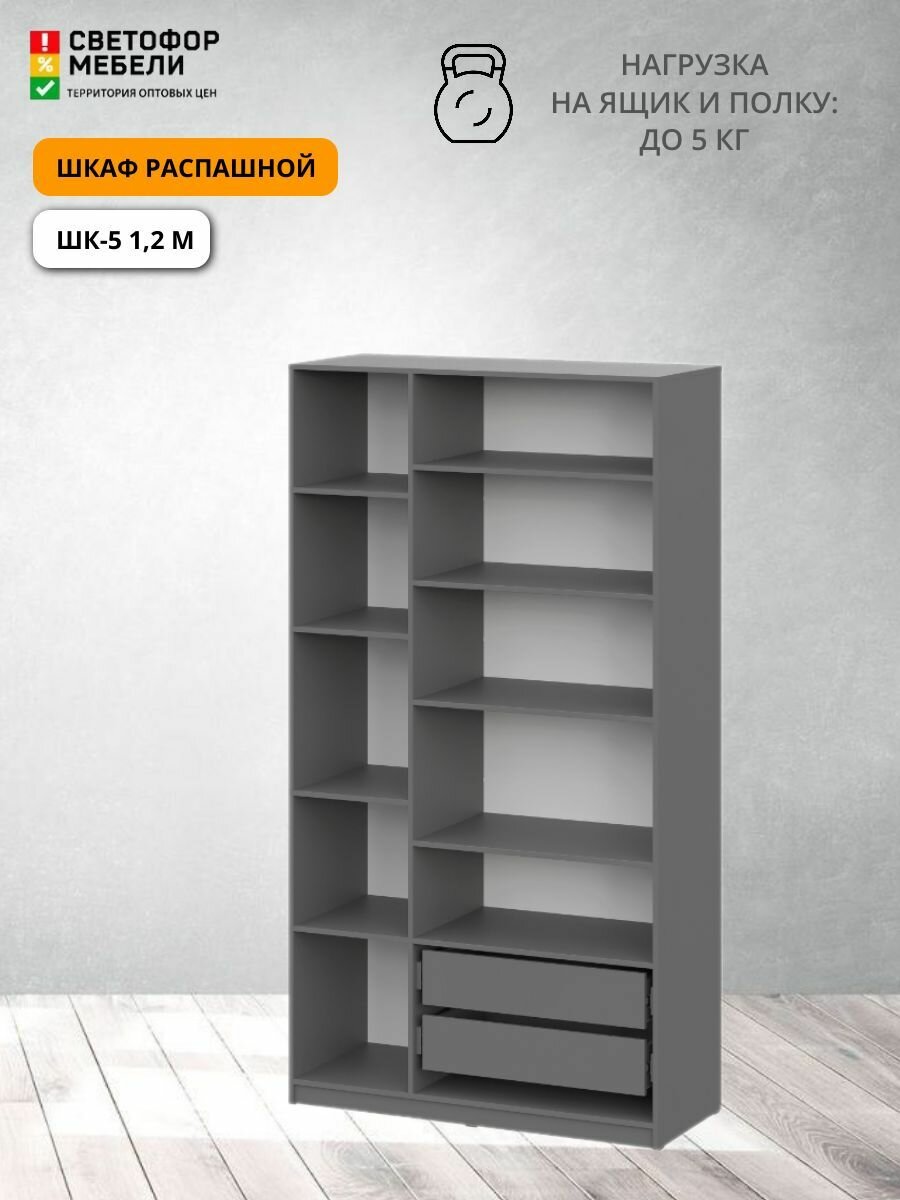 Шкаф распашной Мебельный рай ШК 5 1,2м 1201х2216х506, Графит серый, с комплектом доп. полок и ящиками 18 530 ₽