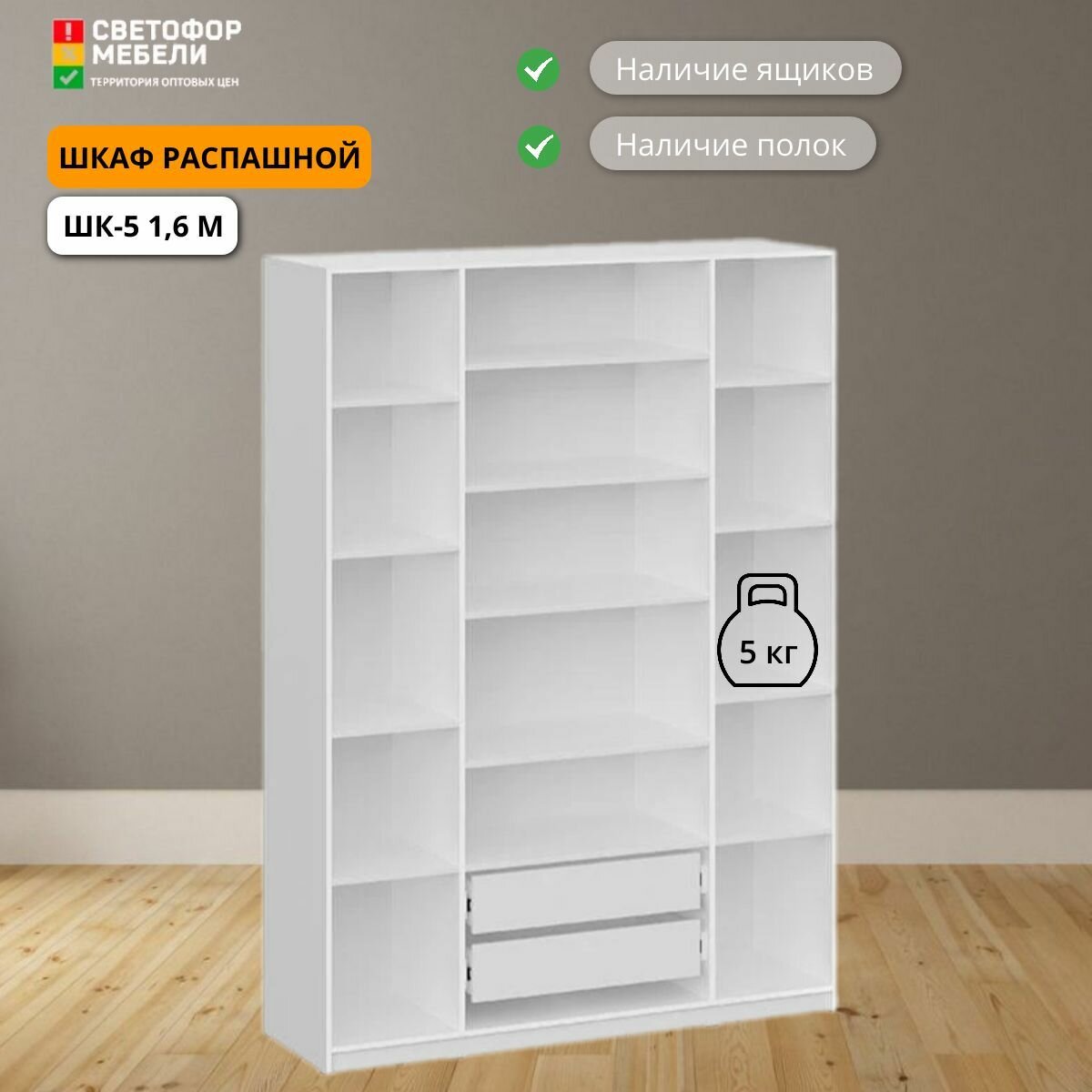 Шкаф распашной Мебельный рай ШК-5 1,6 1601х2216х506, Белый текстурный, с двумя комплектами полок и ящиками информация: