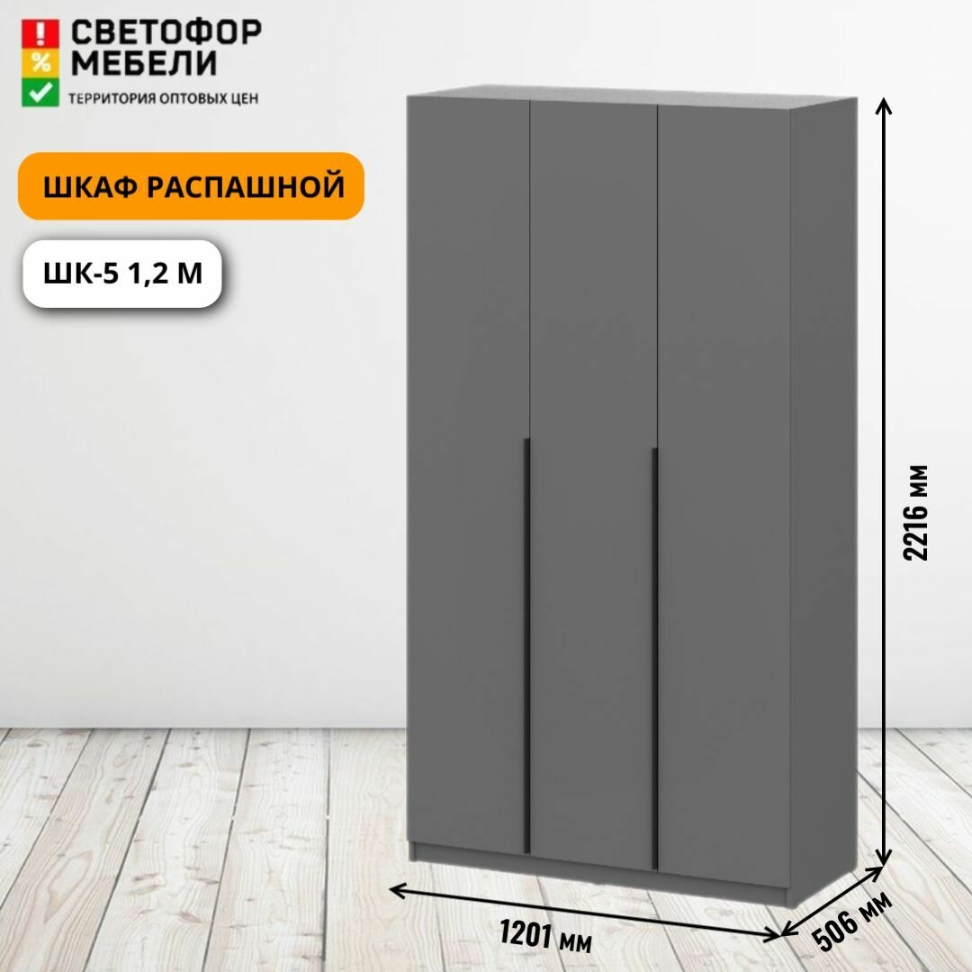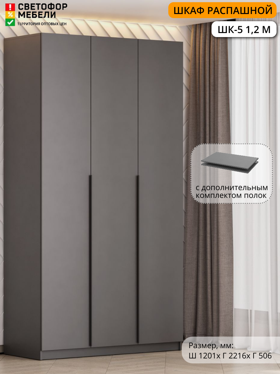 Шкаф распашной Мебельный рай ШК 5 1,2м 1201х2216х506, Графит серый, с комплектом полок информация: