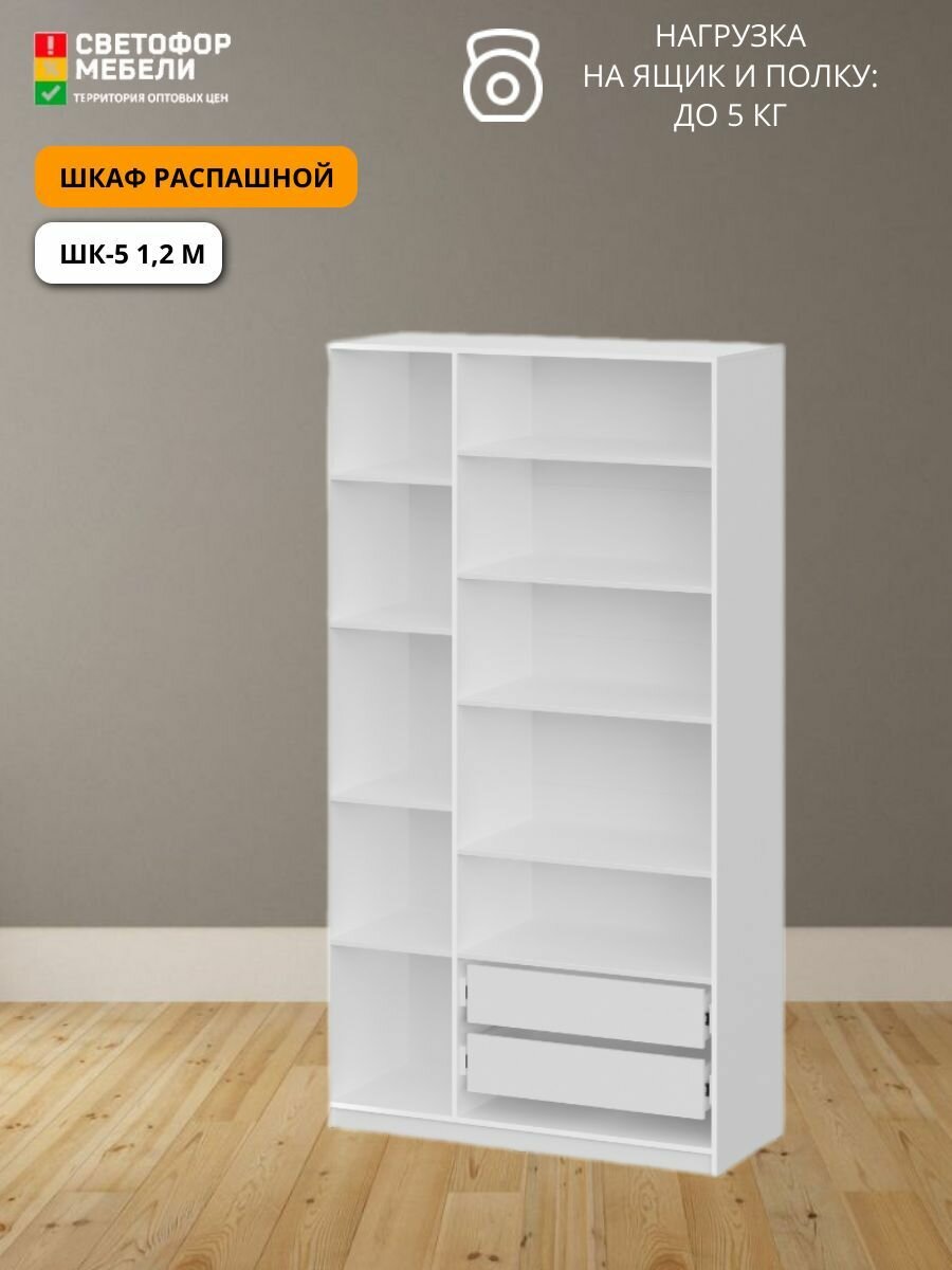 Шкаф распашной Мебельный рай ШК 5 1,2м 1201х2216х506, Белый текстурный, с двумя комплектами доп. полок и ящиками информация:
