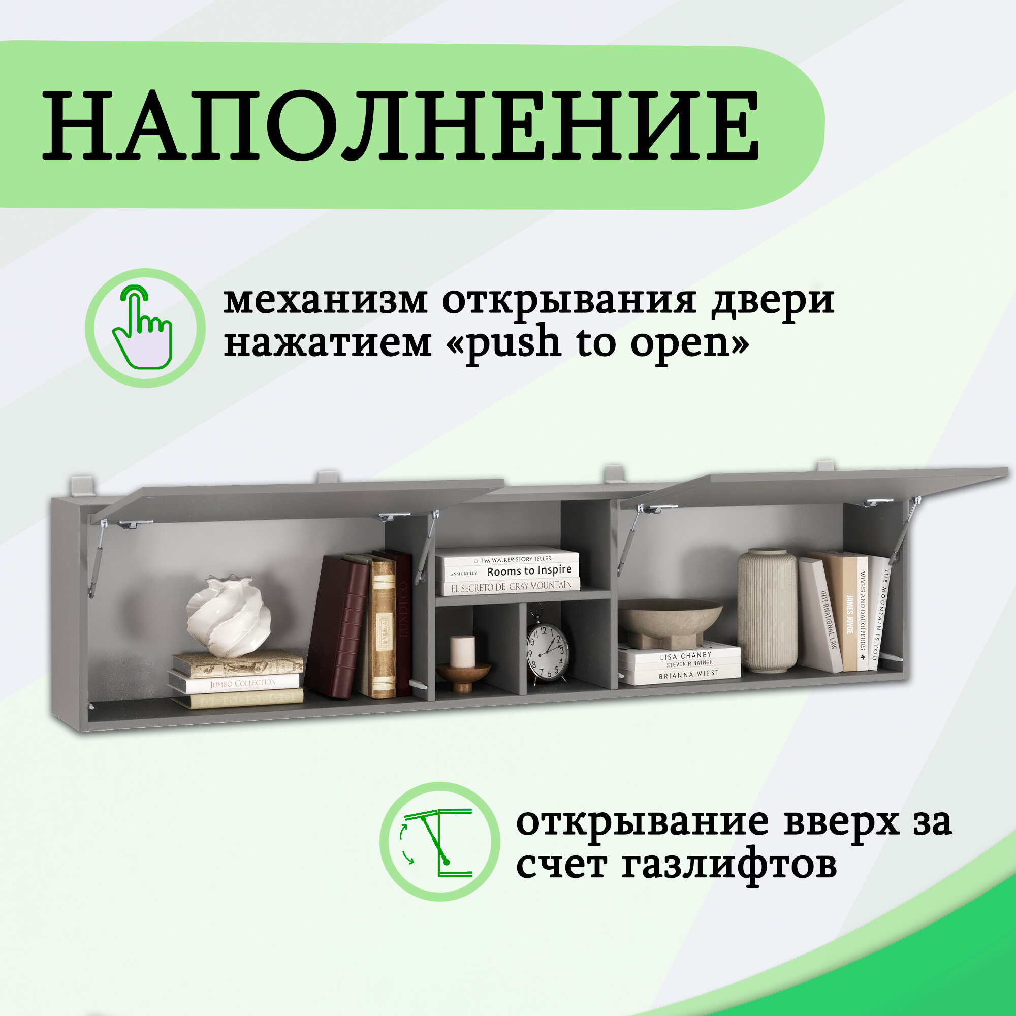 Есэндвич Grand Лаворо 11 Шкаф навесной 180х40х25 см (Хаки), с полками, с дверцами 11 890 ₽