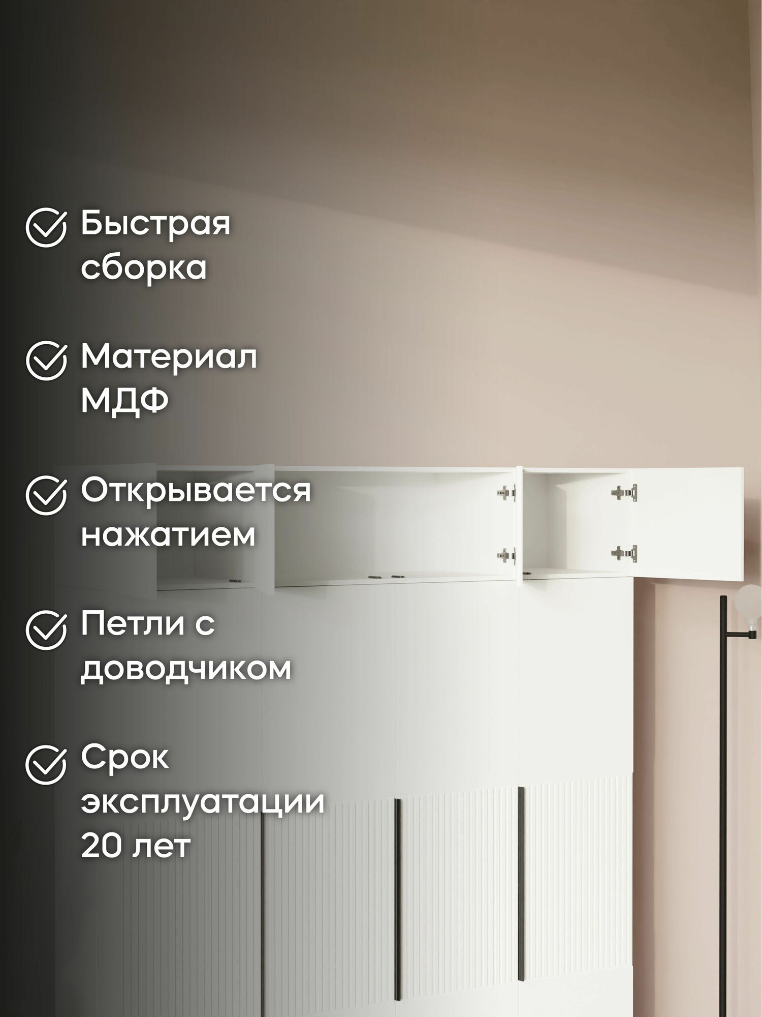 Отзывы на LAERA Антресоль на шкаф распашная четырехдверная линии белая 40 см