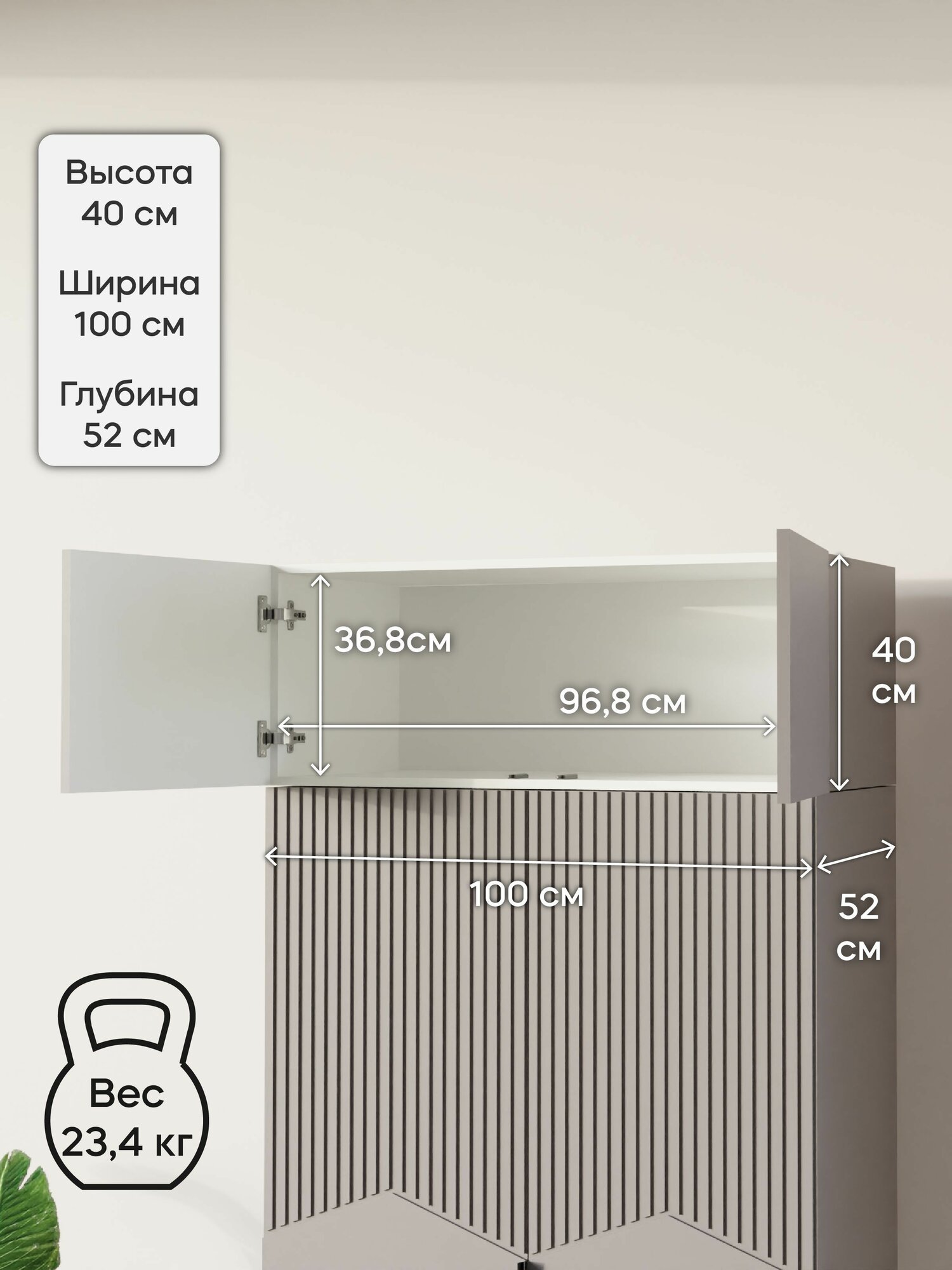 Антресоль LAERA, 100х40х52 см, ЛДСП, МДФ, белый, доводчики информация: