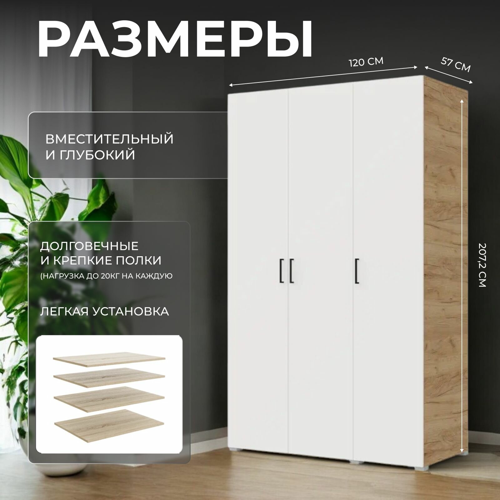 Отзывы на Шкаф распашной 3-х створчатый Бостон 120 Б с полками, крафт золотой/белый