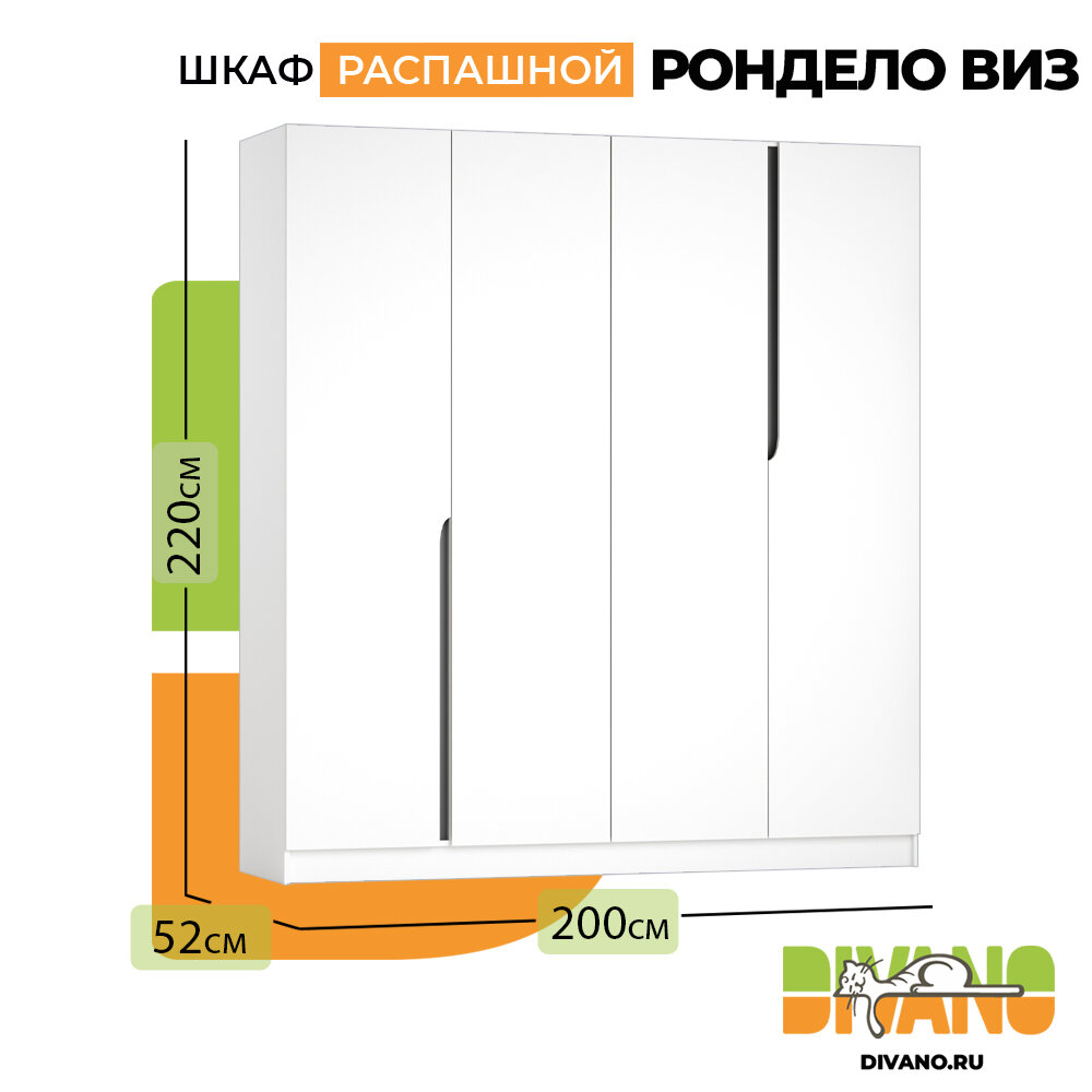 Отзывы на Шкаф распашной Рондело виз 4-х дверный без зеркал 2.0 м (белый)