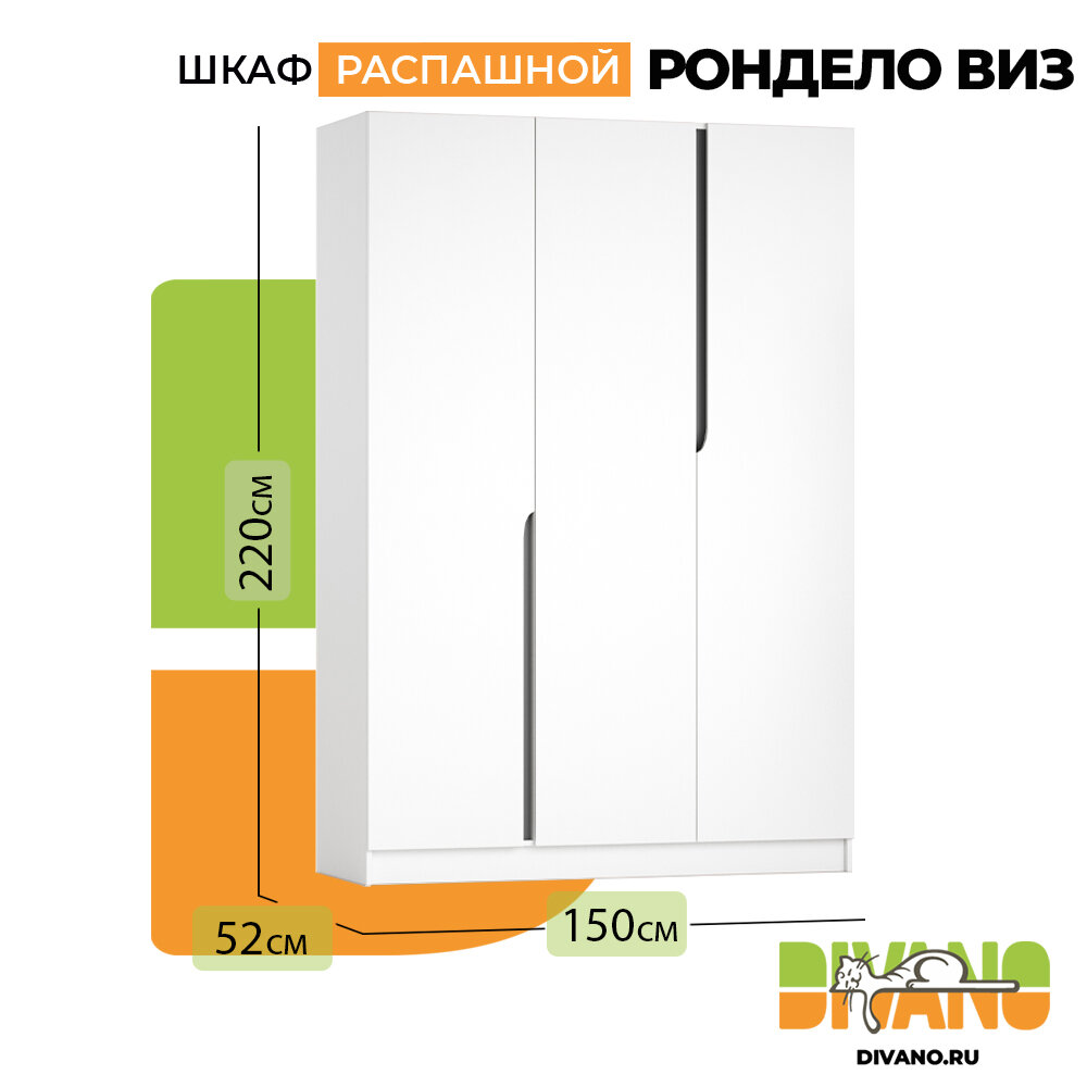 Шкаф распашной Рондело виз, 3-х дверный без зеркал 1.5 м (белый) информация: