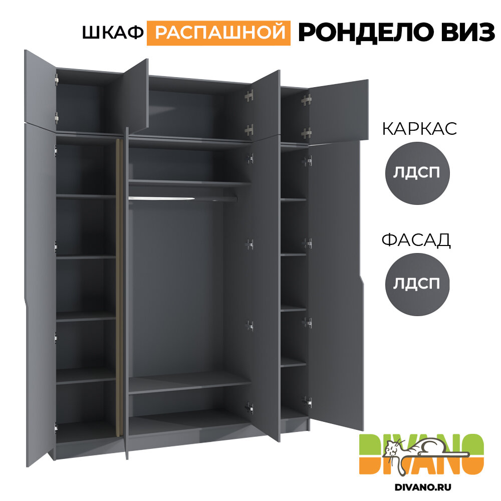 Отзывы на Шкаф распашной Рондело виз 4-х дверный с антресолью без зеркал 2.0 м (графит)