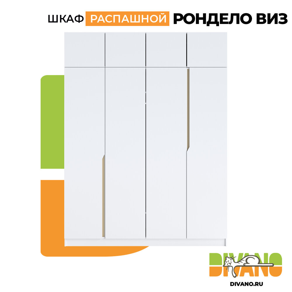 Отзывы на Шкаф распашной Рондело виз 4-х дверный с антресолью без зеркал 2.0 м (белый)