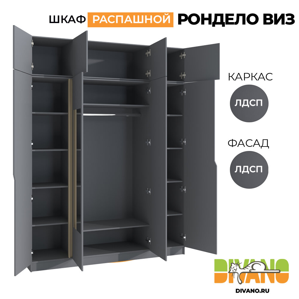 Шкаф распашной Рондело виз 4-х дверный с антресолью без зеркал 2.0 м (графит) 37 030 ₽