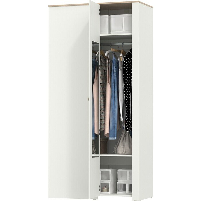 Отзывы на Шкаф Моби Джастин 13.229 цвет белый шагрень/ дуб белый эксклюзив, ШхГхВ 111,4х54,8х225,7 см с зеркалом