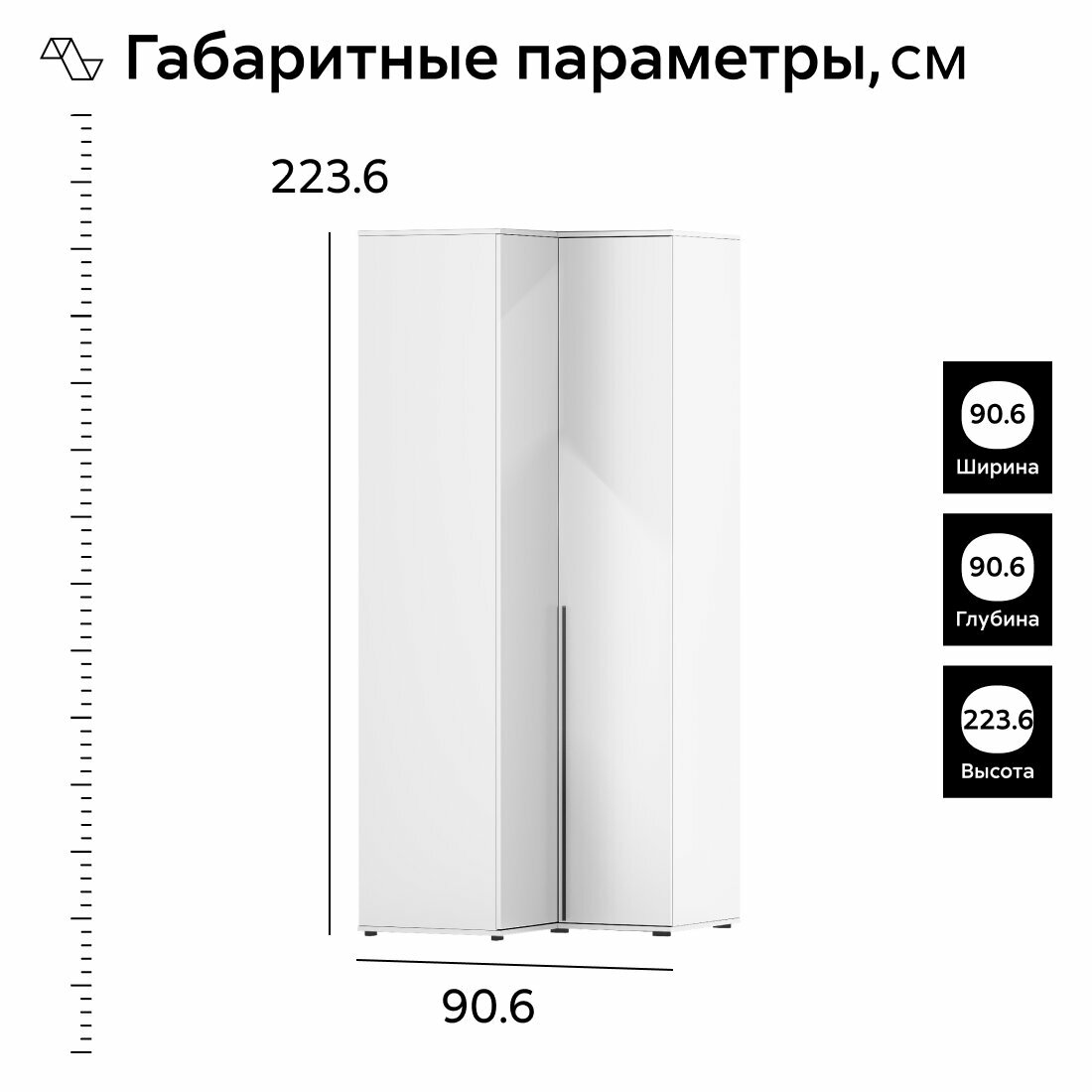 Шкаф для одежды угловой Нонтон Норд, белый / белый глянец, 90 см информация: