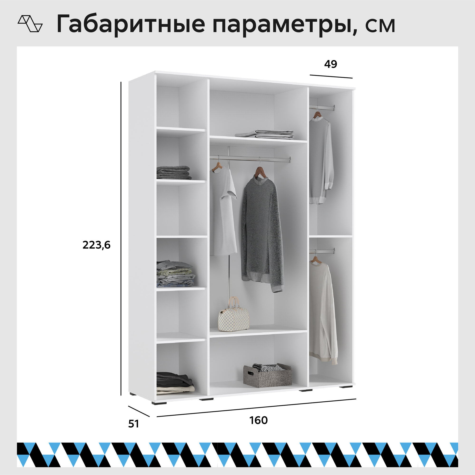 Шкаф для одежды распашной Нонтон Луас, 120 см, 7 полок и штанга, белый глянец