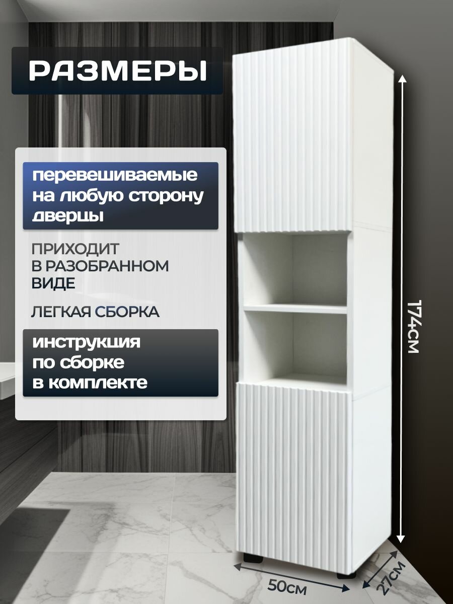 Шкаф-пенал для ванной, напольный, универсальный 50х174х27, МДФ1 информация: