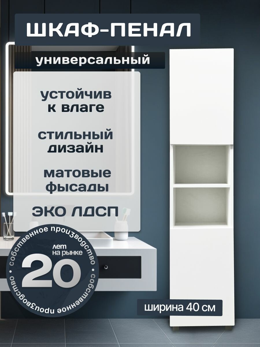 10 цен на Шкаф-пенал для ванной, напольный, универсальный 40х174х27, ЛДСП