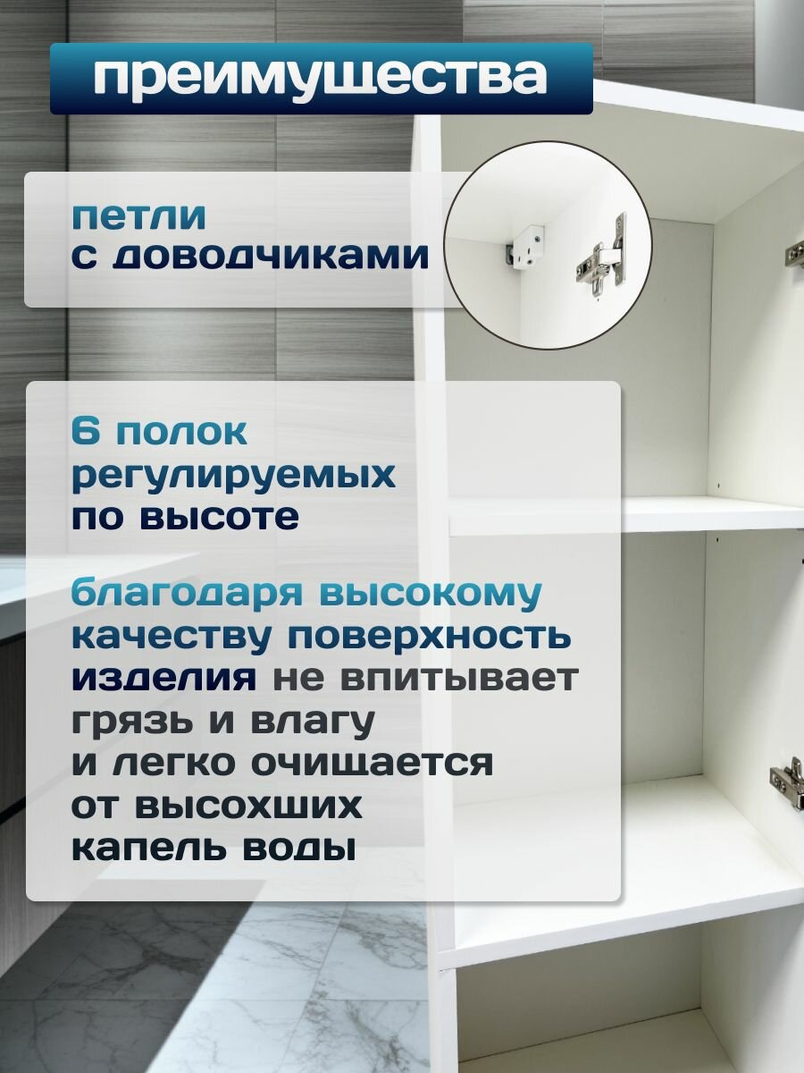 Шкаф-пенал для ванной, напольный, универсальный 30х174х27, МДФ Волна 6 600 ₽