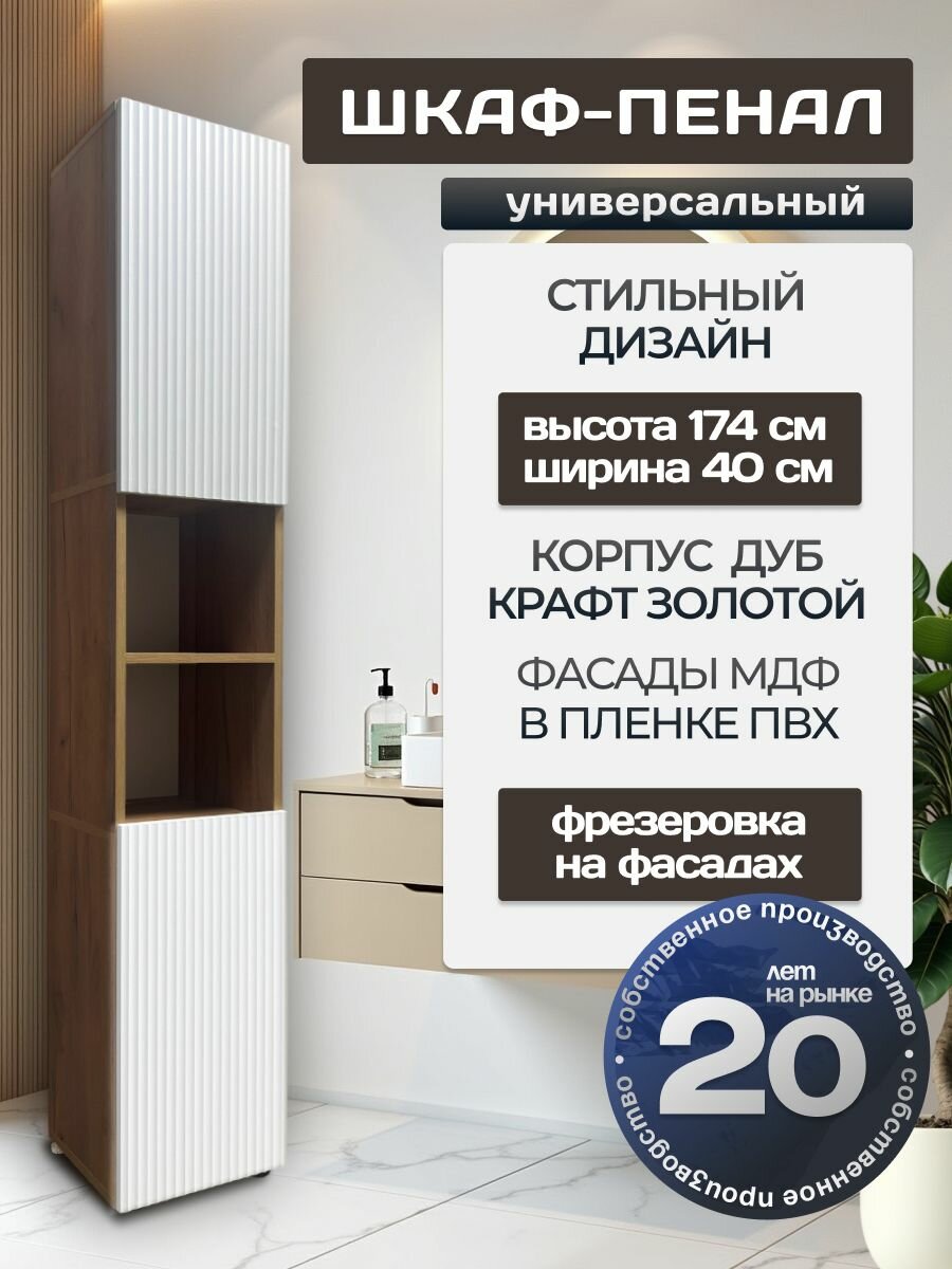 Шкаф-пенал для ванной, напольный, универсальный 40х174х27, МДФ Волна информация: