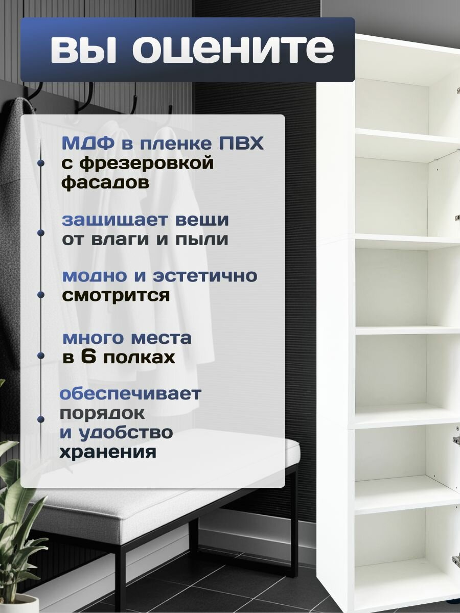 Шкаф для одежды распашной Нонтон Луас, 120 см, 7 полок и штанга, белый глянец