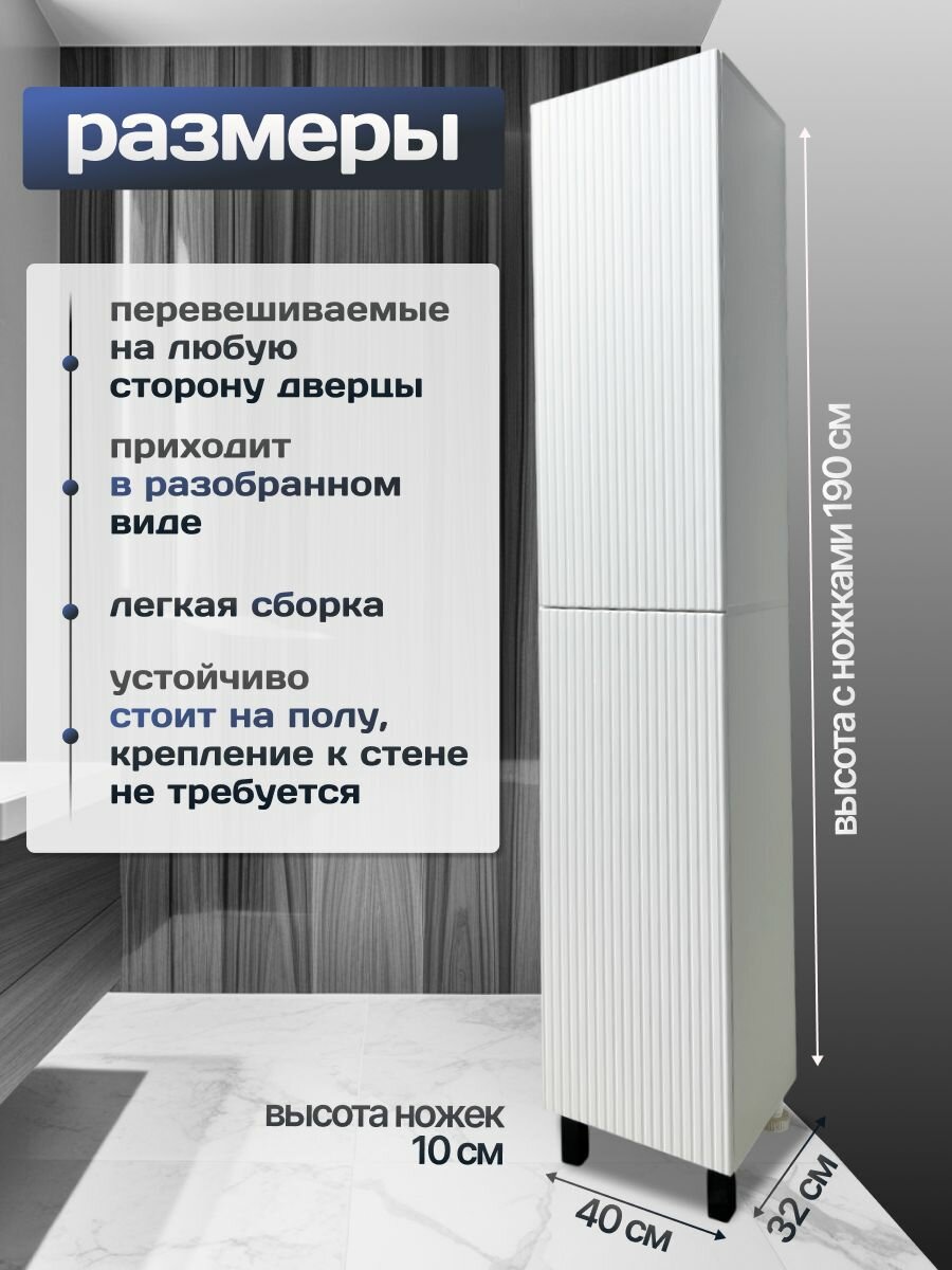 Шкаф-пенал ПВХ 40х190 универсальный, 190х40х32 информация: