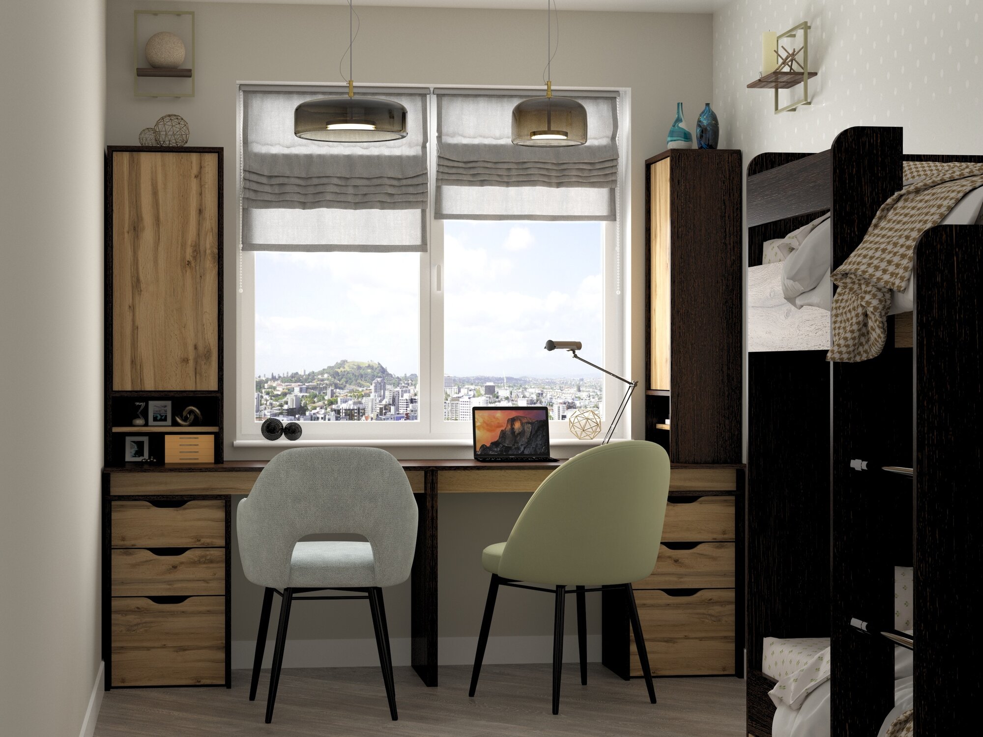 Шкаф для одежды распашной Нонтон Луас, 2 шт, 320 см, 20 полок и 2 штанги, эндгрейн / меланж