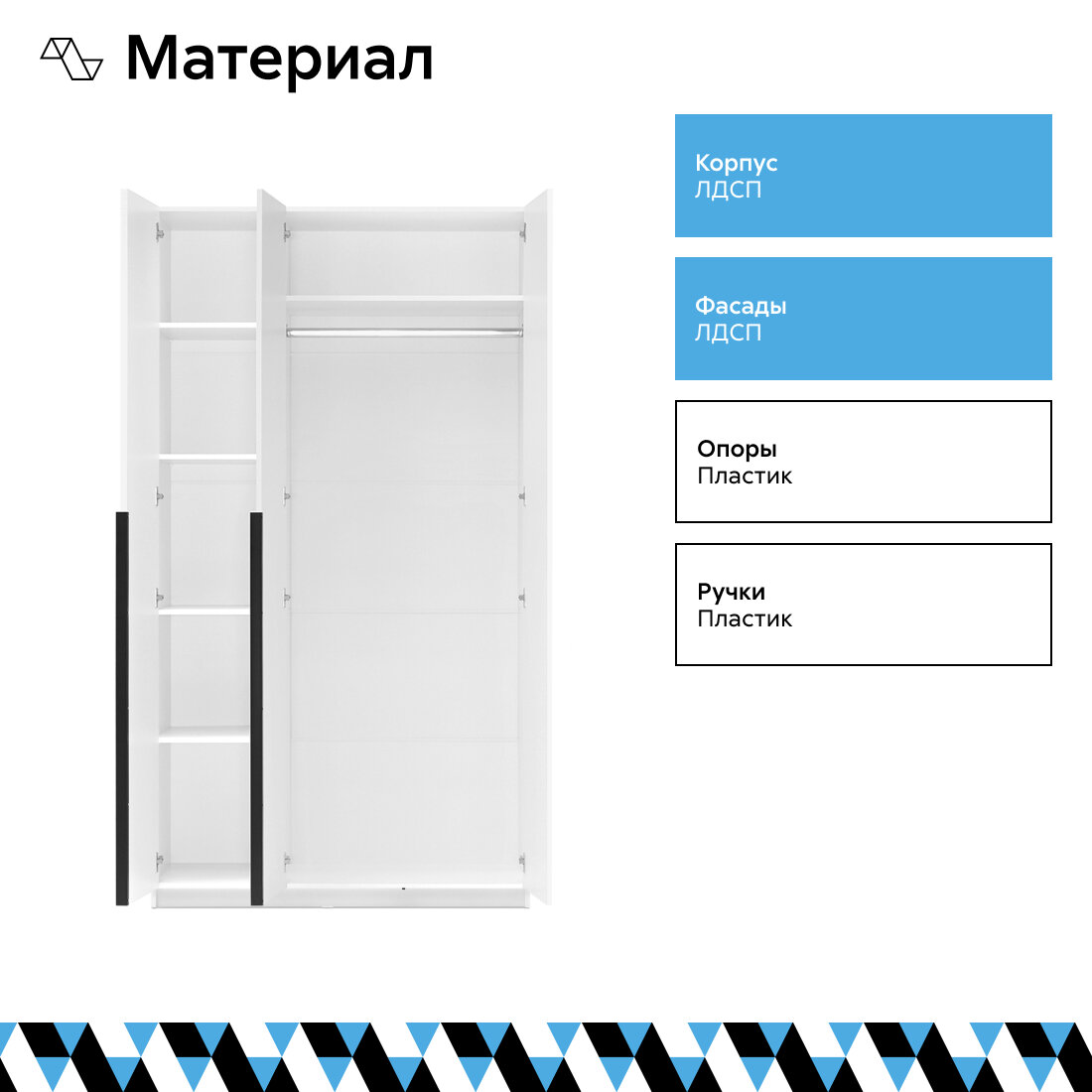 Шкаф для одежды распашной Нонтон Луас, 120 см, 5 полок и штанга, белый глянец информация: