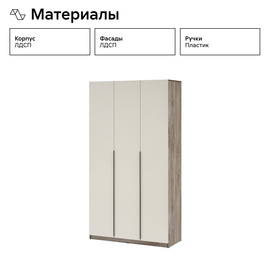 Шкаф распашной МебельЛэнд24 Марсель - 3 Кашемир с антресолью 140x50x270 бежевый для одежды трехдверный