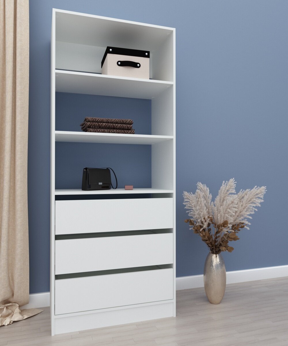 Шкаф для одежды распашной Нонтон Луас, 120 см, 7 полок и штанга, белый глянец