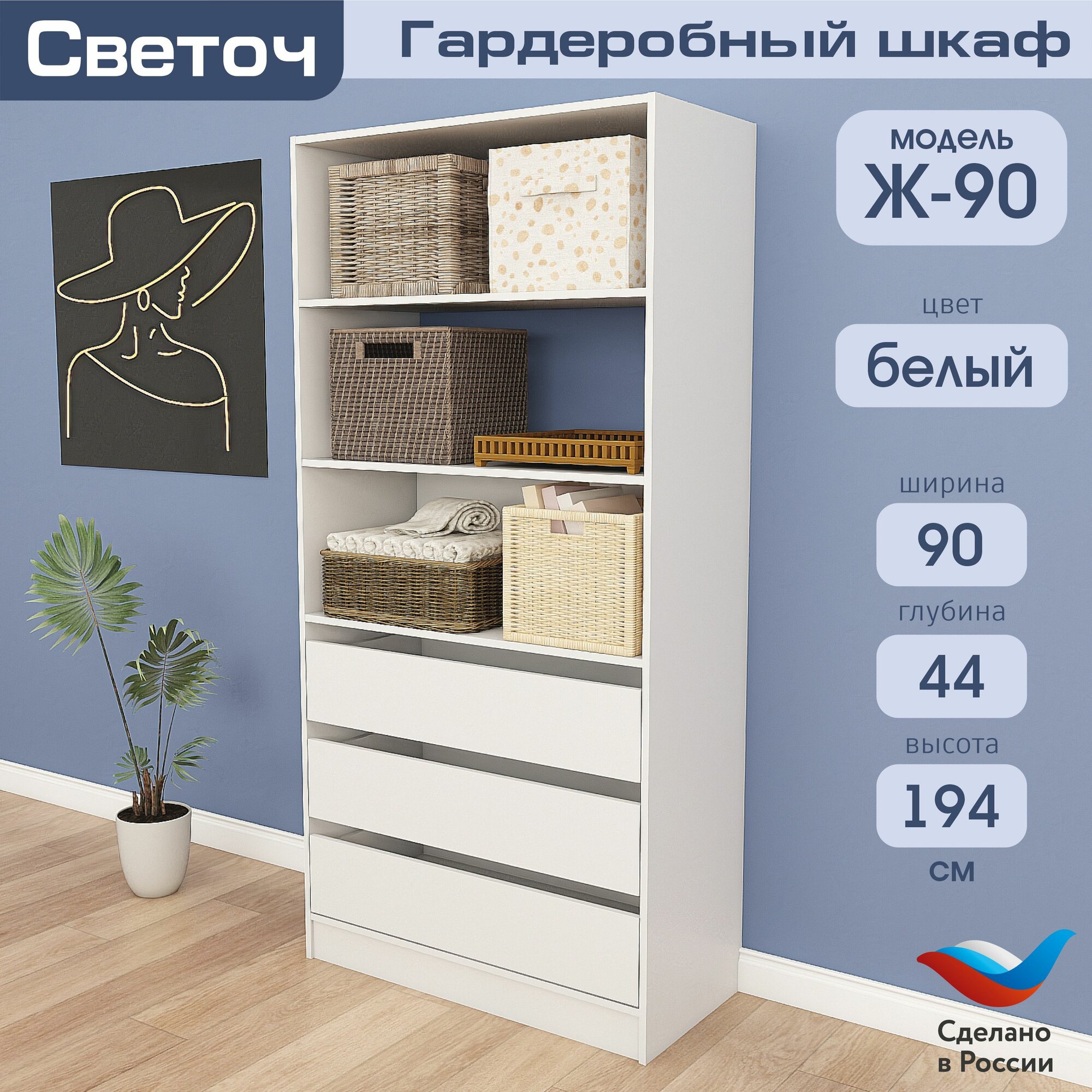 10 цен на Гардеробный шкаф Светоч Ж90, ЛДСП, 90х44х194, Белый