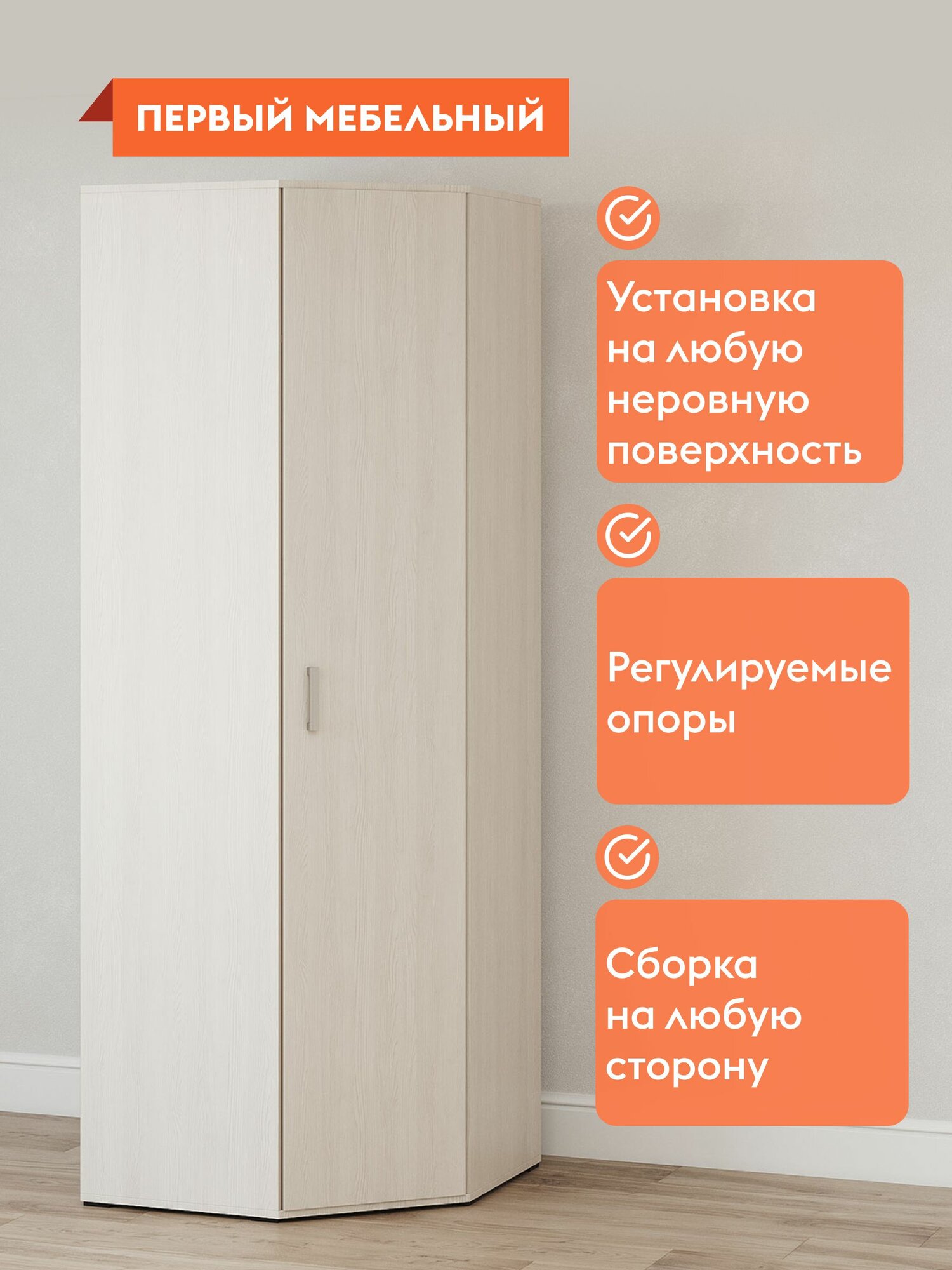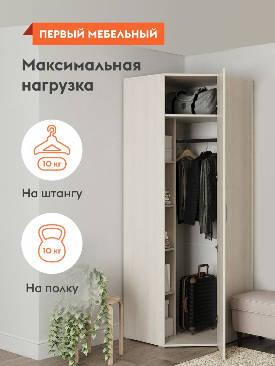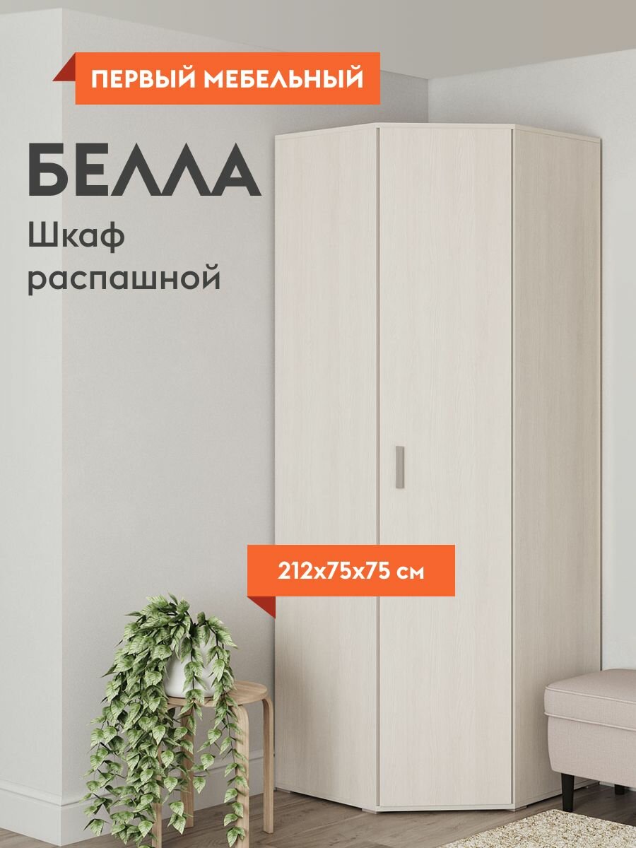 Шкаф распашной для одежды Белла угловой, с полками, штангой, 74.7х74.7х212 см, Белый ясень информация:
