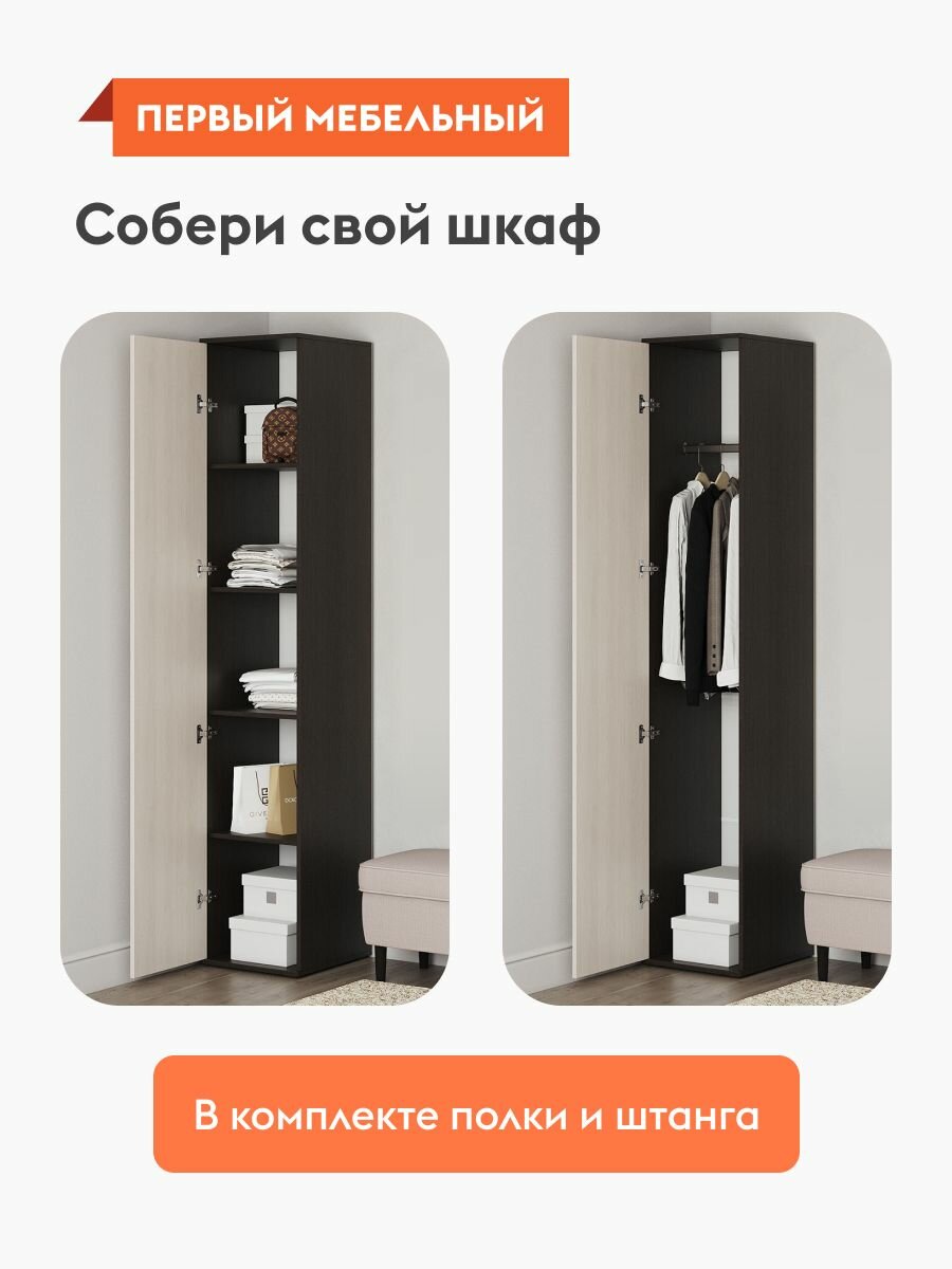 Шкаф пенал распашной для одежды Белла с полками, 40х47х212 см, Венге / Белый ясень информация: