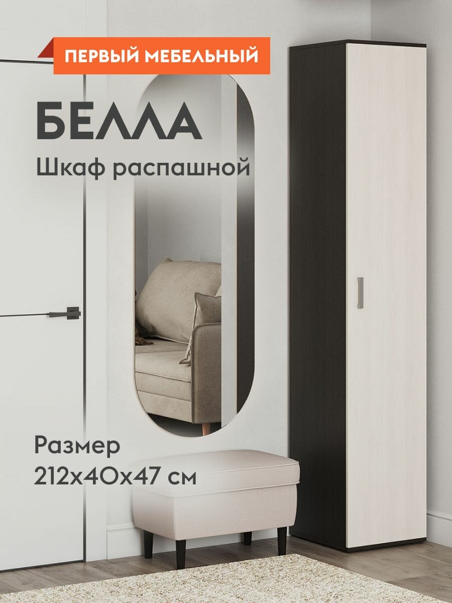 10 цен на Шкаф пенал распашной для одежды Белла с полками, 40х47х212 см, Венге / Белый ясень