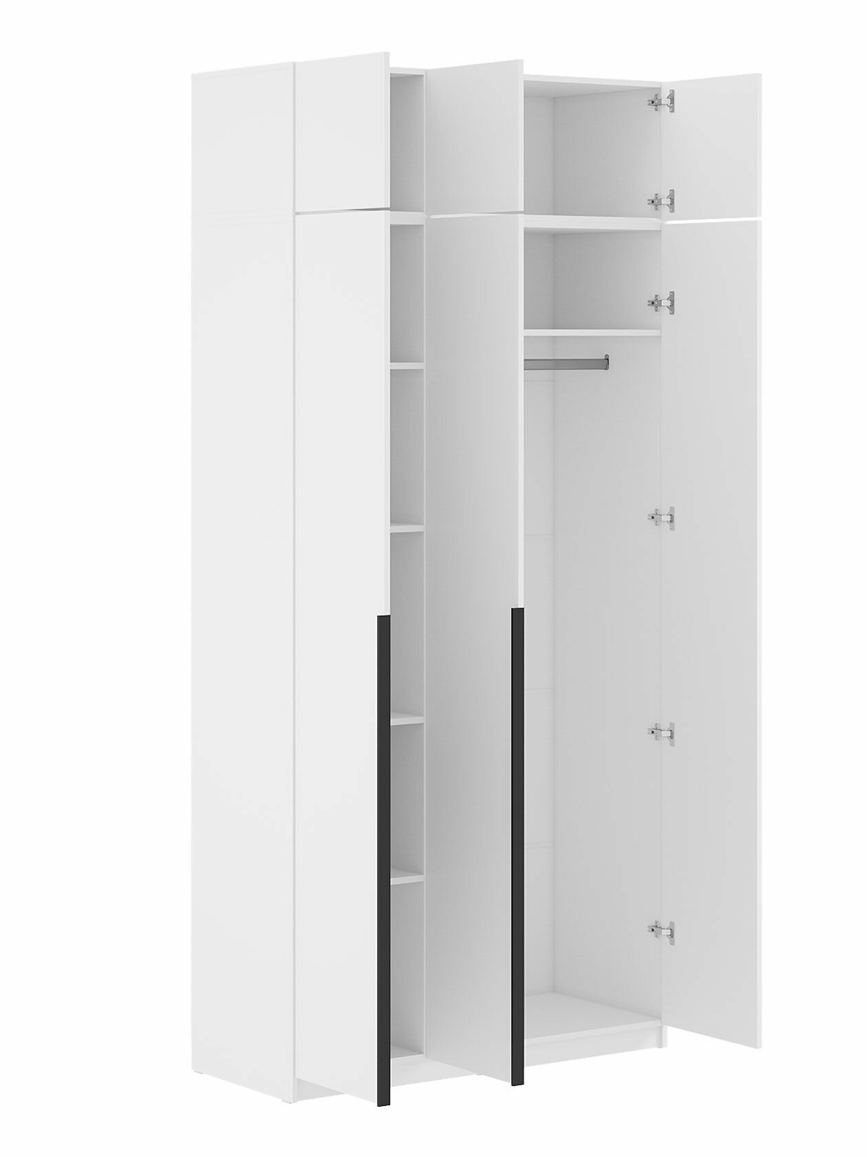 Шкаф для одежды распашной Нонтон Луас, 120 см, 7 полок и штанга, белый глянец