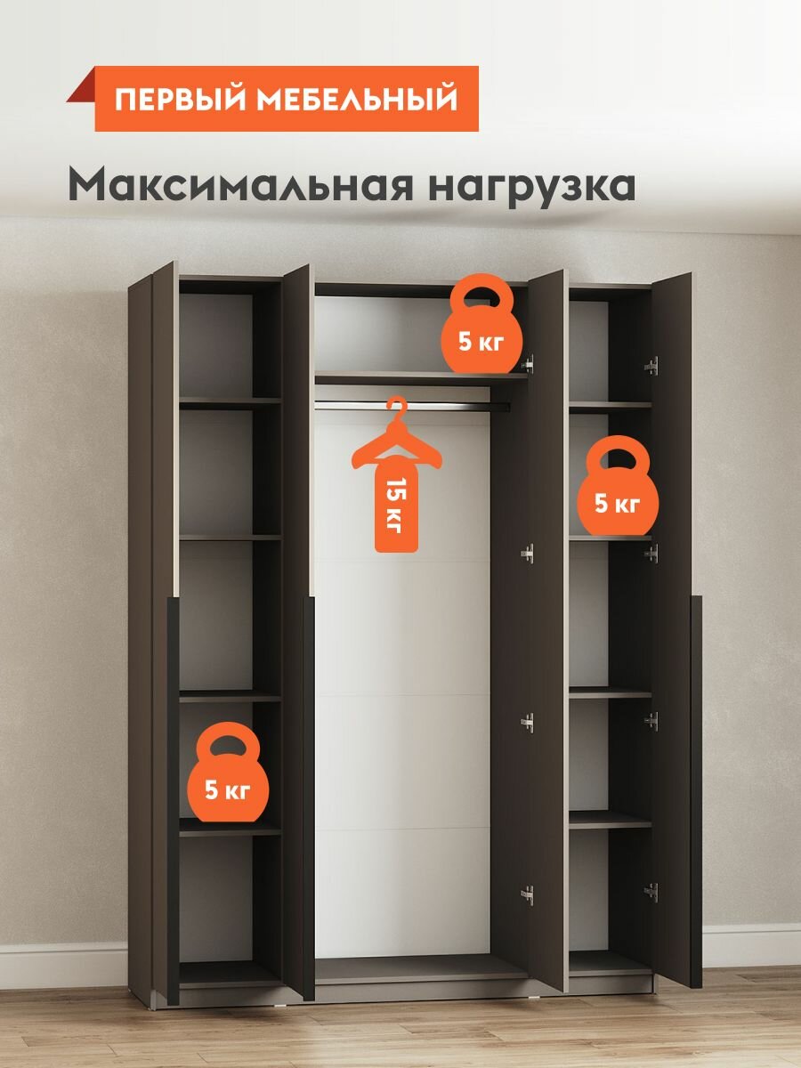Отзывы на Шкаф распашной для одежды Арно с полками, со штангой, с доводчиками, 160.1х50.6х221.6 см, Меланж
