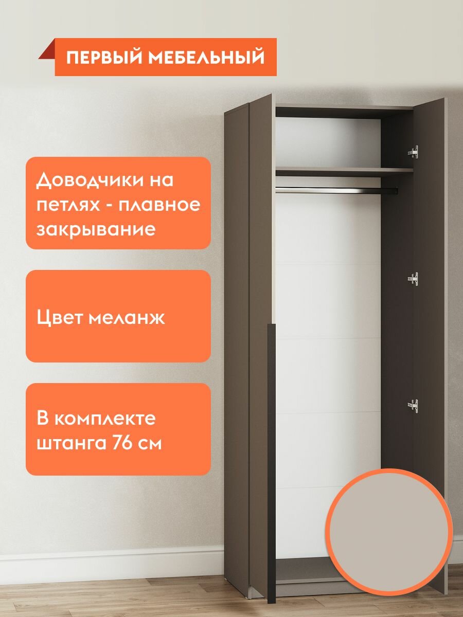 Шкаф распашной для одежды Арно со штангой, с полками, с доводчиками, 80.1х50.6х221.6 см, Меланж информация: