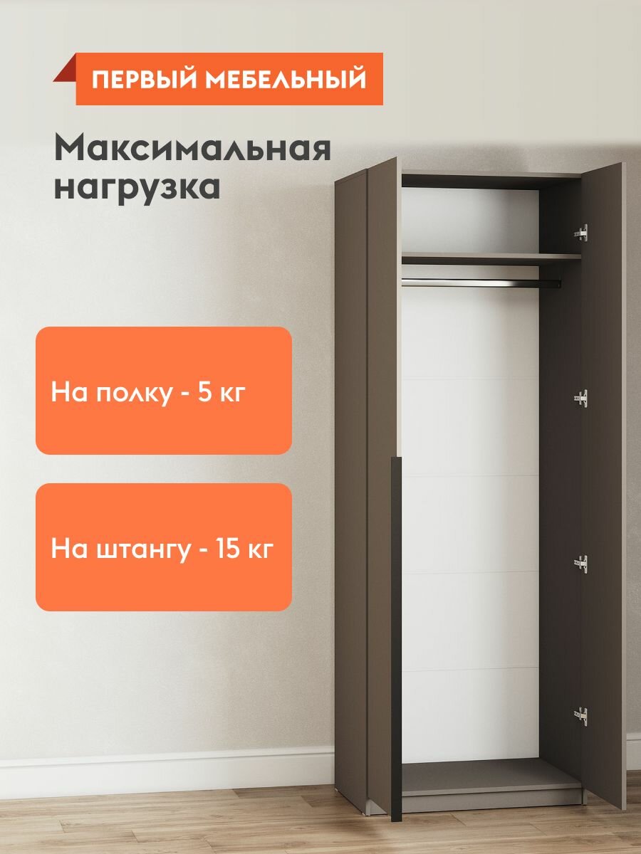 Шкаф распашной для одежды Арно со штангой, с полками, с доводчиками, 80.1х50.6х221.6 см, Графит 9 740 ₽
