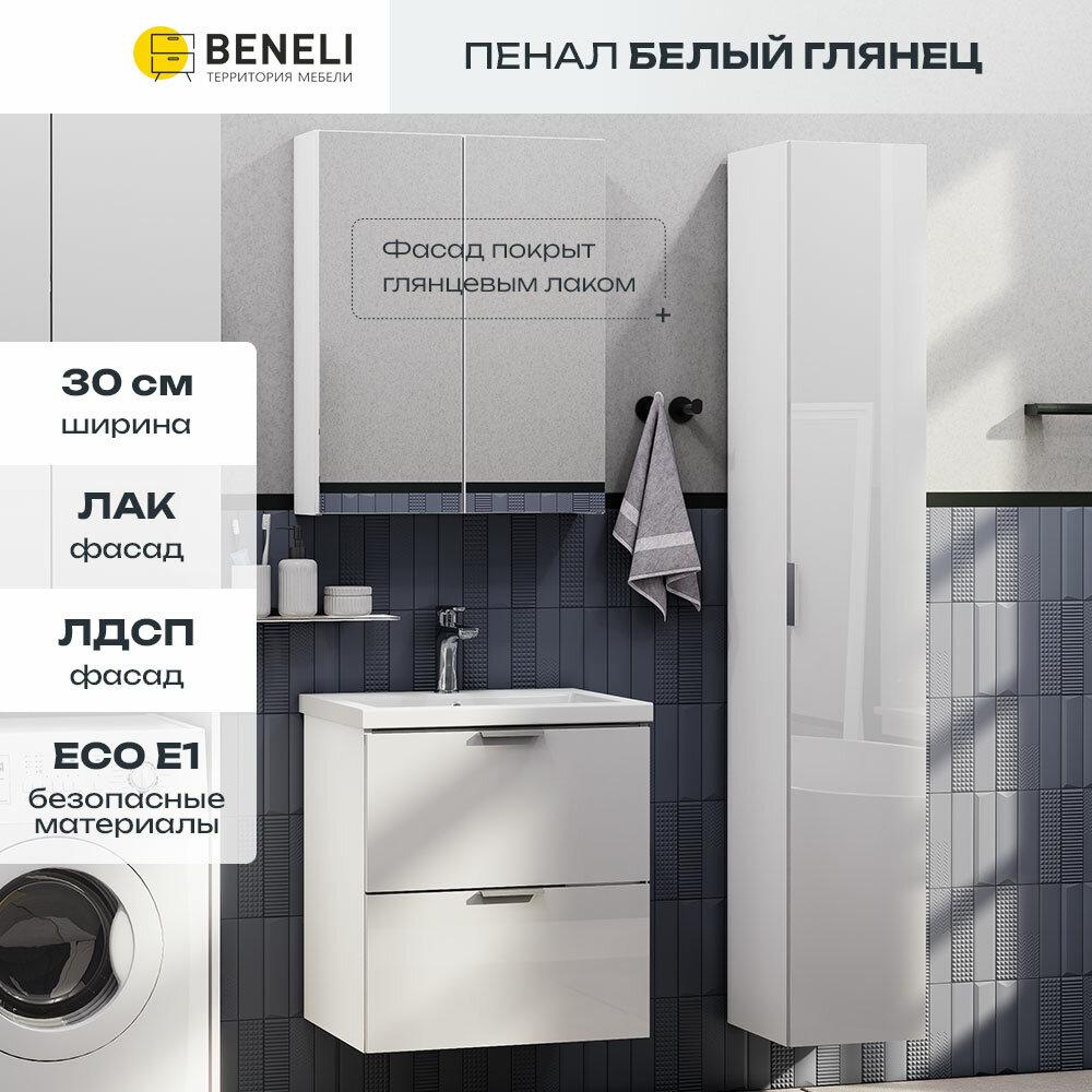 Шкаф-пенал Beneli Белый глянец, для ванной комнаты, 30х180х31,6 см, 1 шт. информация: