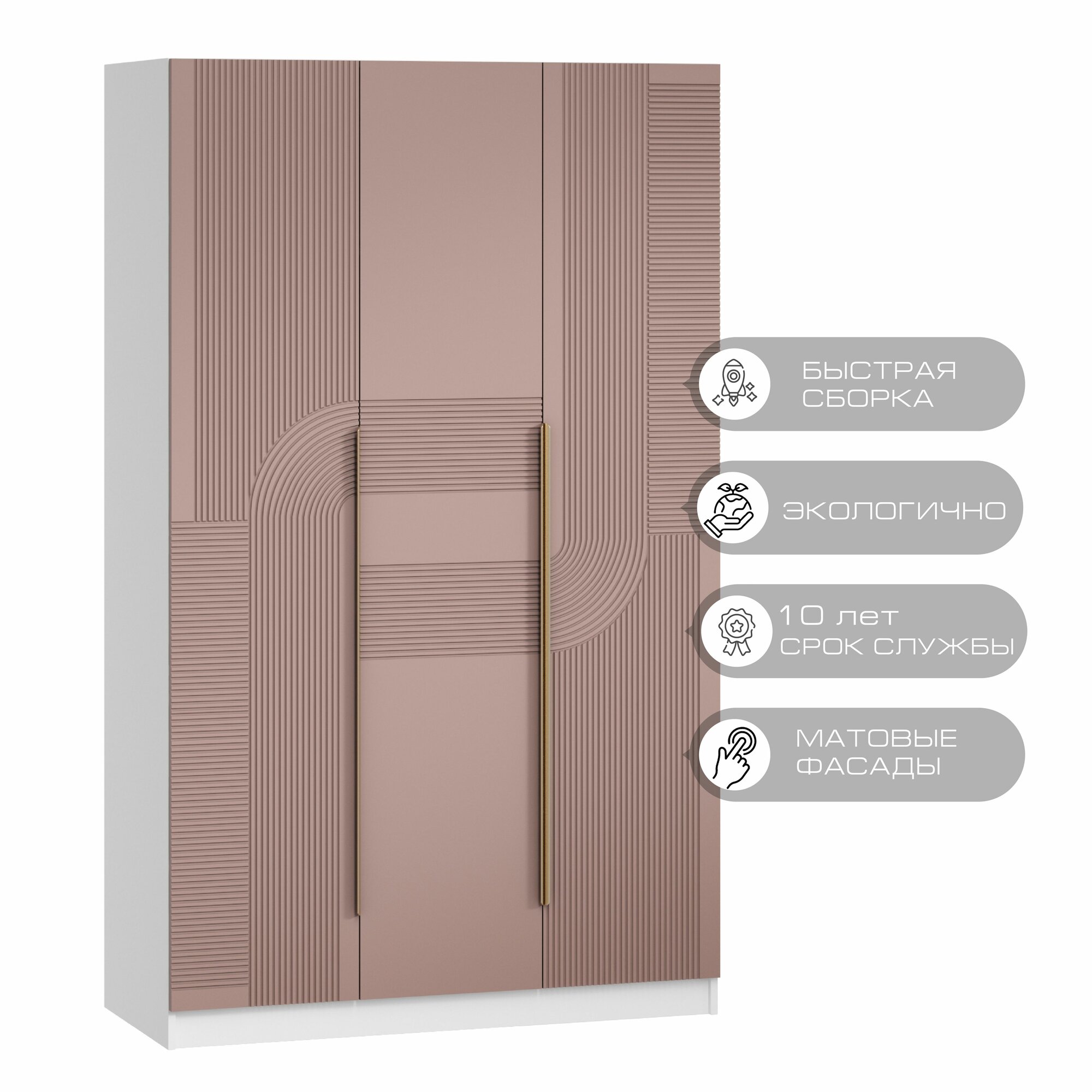 Шкаф распашной МебельЛэнд24 Марсель - 3 Кашемир с антресолью 140x50x270 бежевый для одежды трехдверный