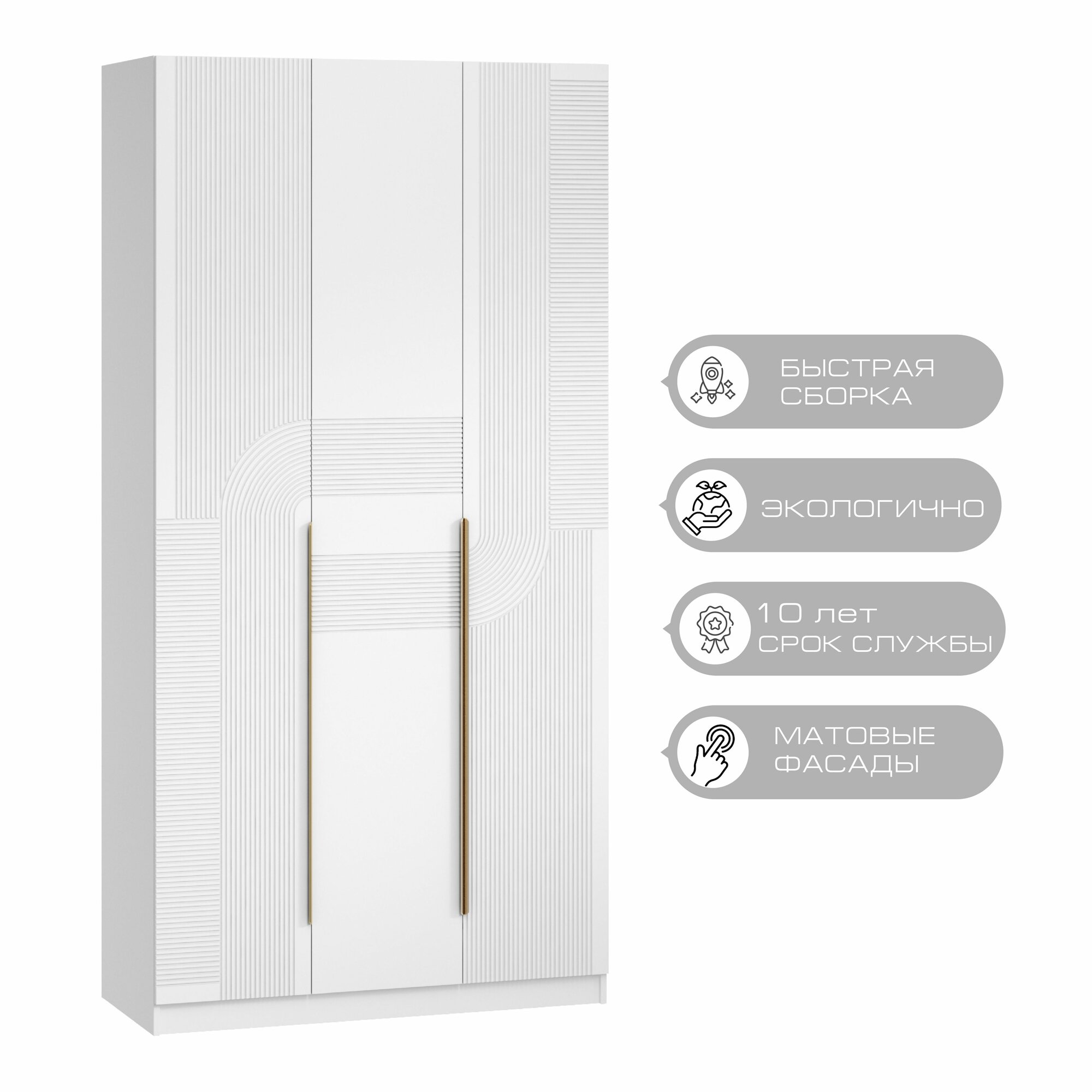 Шкаф для одежды распашной Нонтон Луас, 120 см, 7 полок и штанга, белый глянец