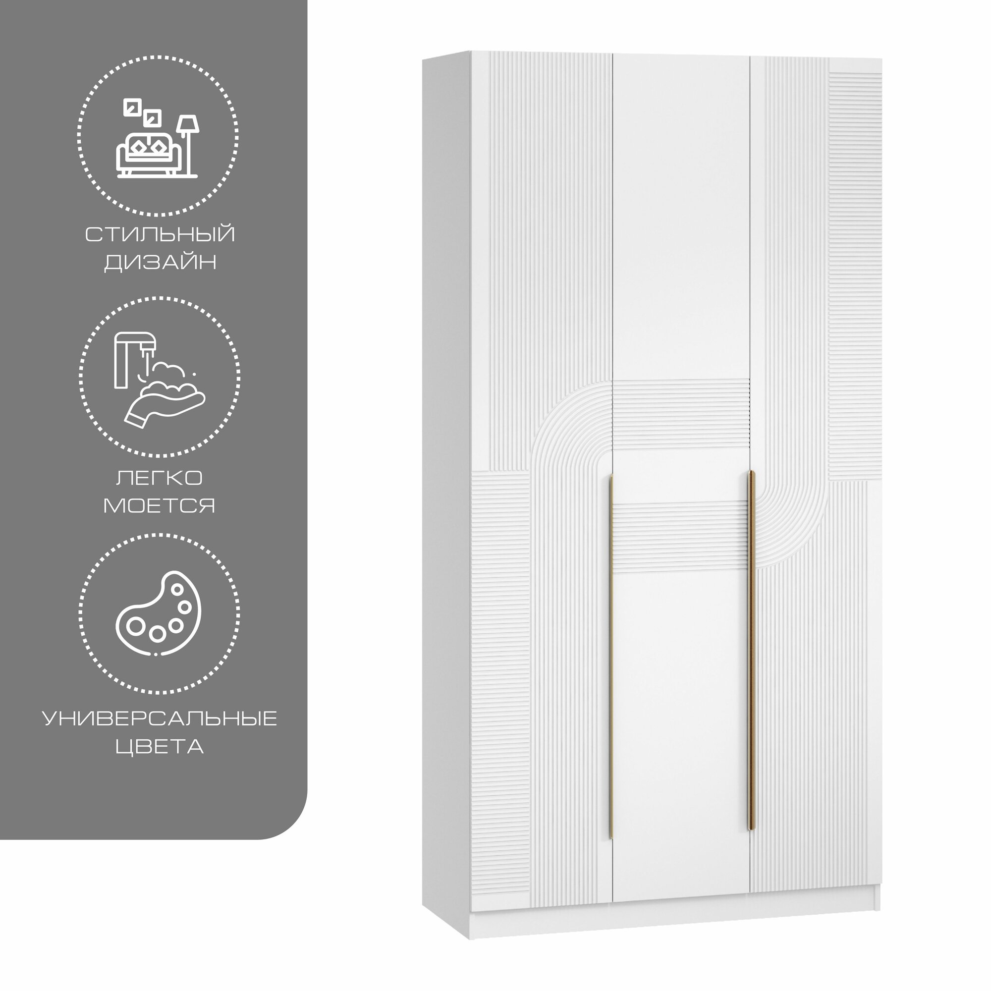Шкаф распашной Мори-3 Белый для одежды двухдверный 100*250*50 Мегамебель