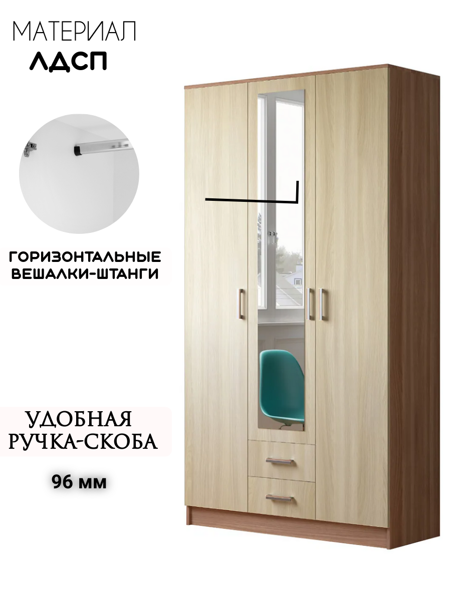Отзывы на Шкаф распашной с зеркалом Трио, ширина 120 см, цвет ясень шимо светлый/темный, ЛДСП