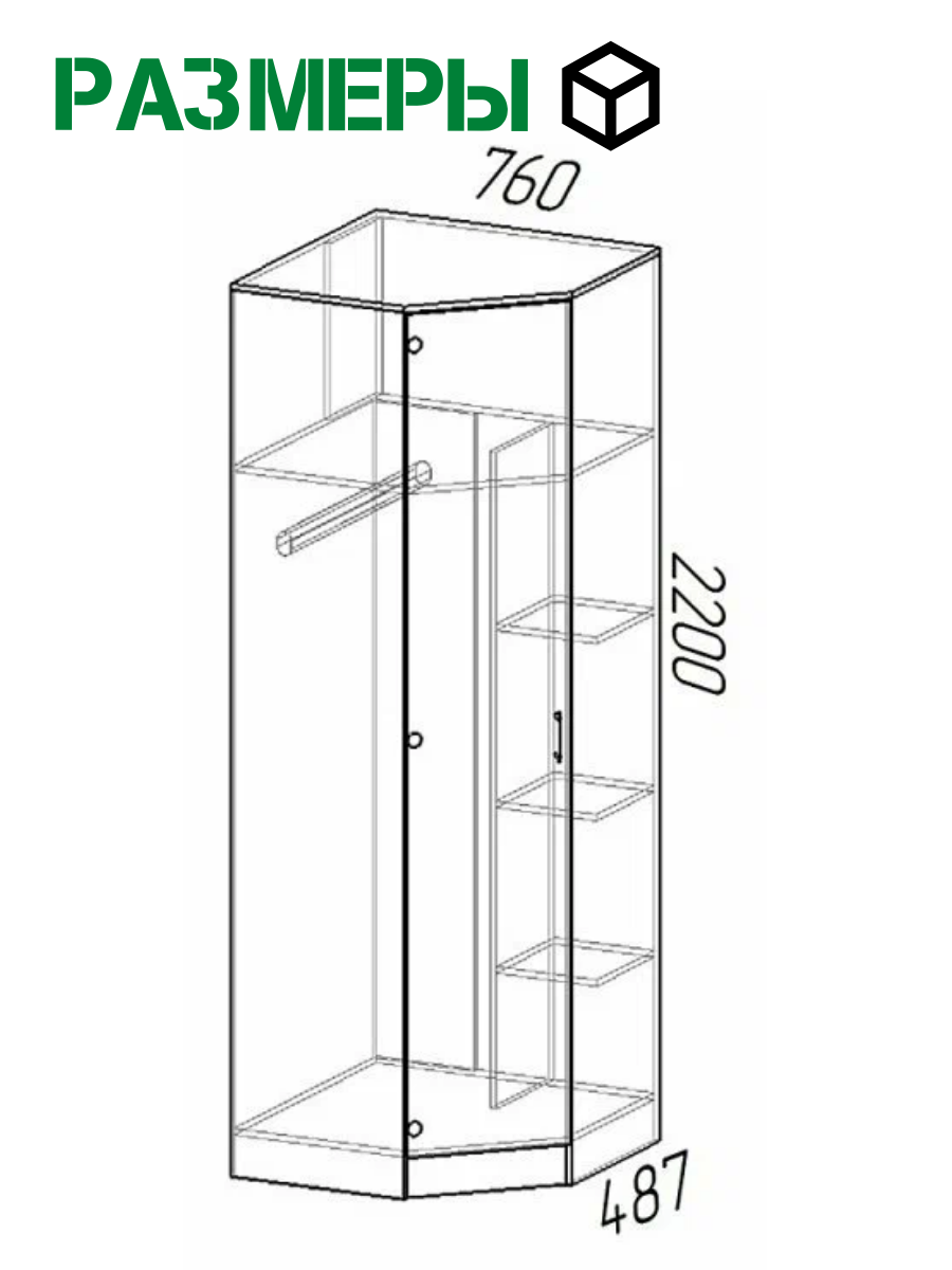 Шкаф угловой распашной, ширина 76 х 76 см, цвет Ясень шимо светлый/темный, ЛДСП информация: