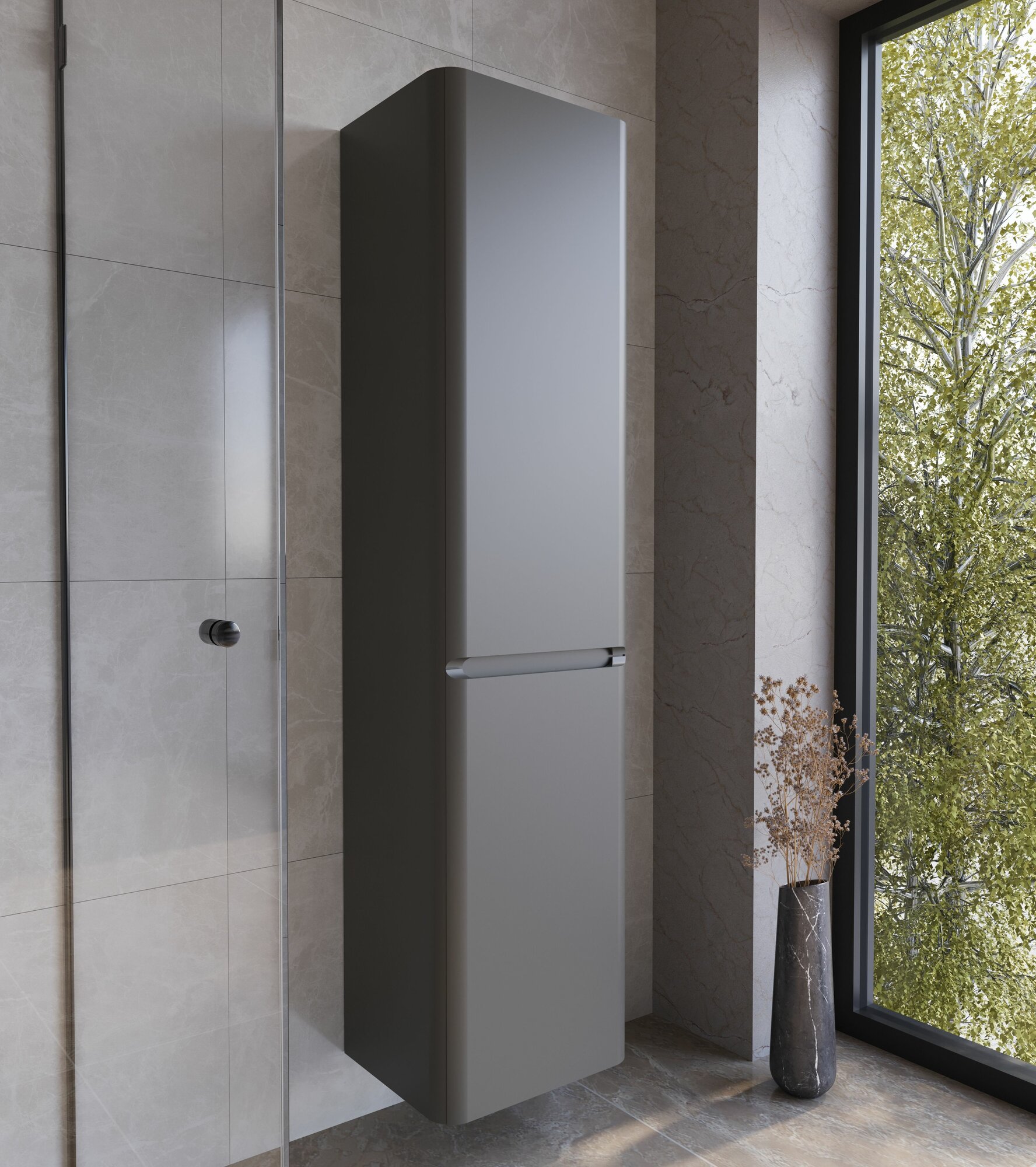 Шкаф пенал для ванной с корзиной для белья подвесной аквакрафт Vita, правый, графит информация: