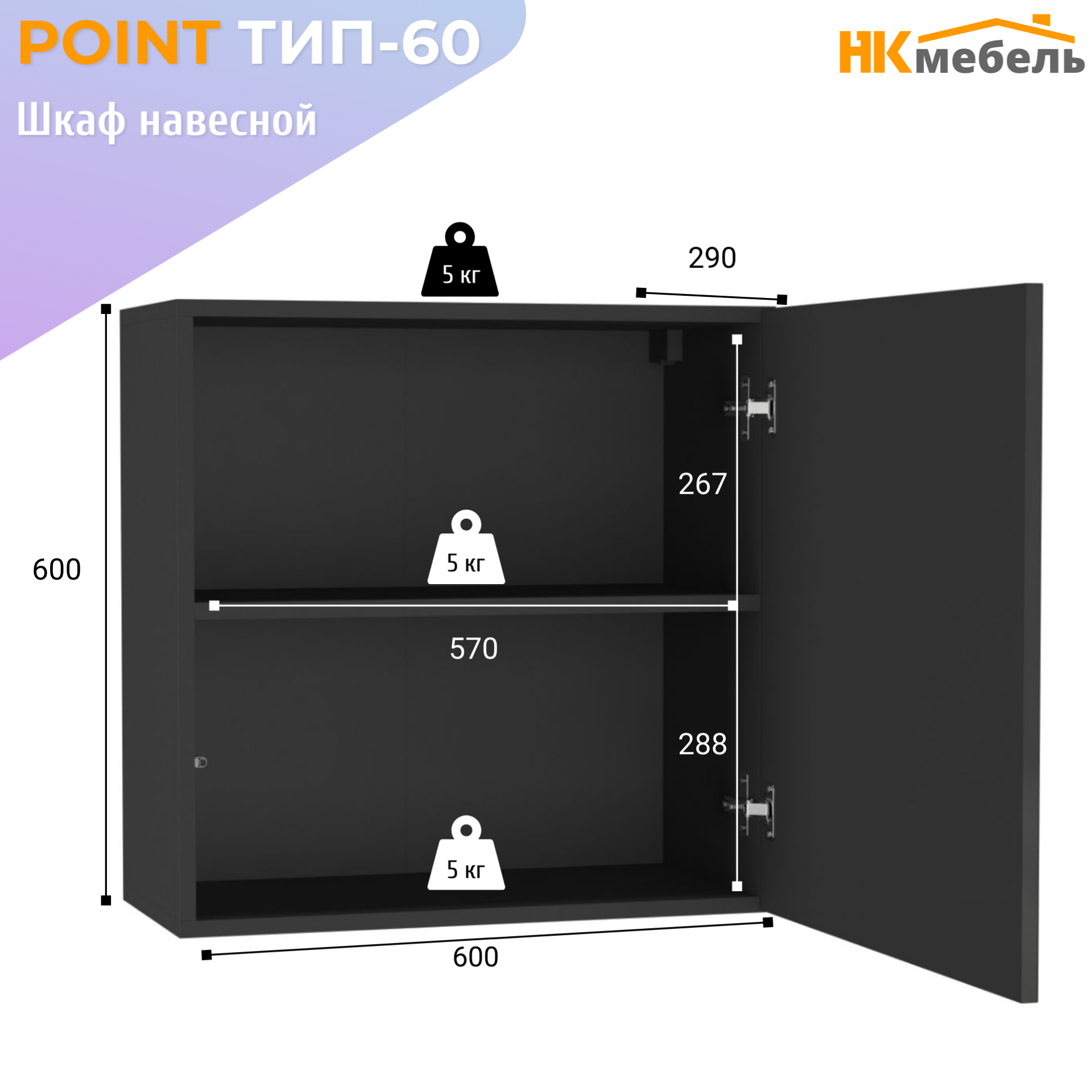 POINT ТИП-60 шкаф навесной, 60 х 60 х 29 см, МДФ/ЛДСП, Чёрный/Чёрный глянец информация: