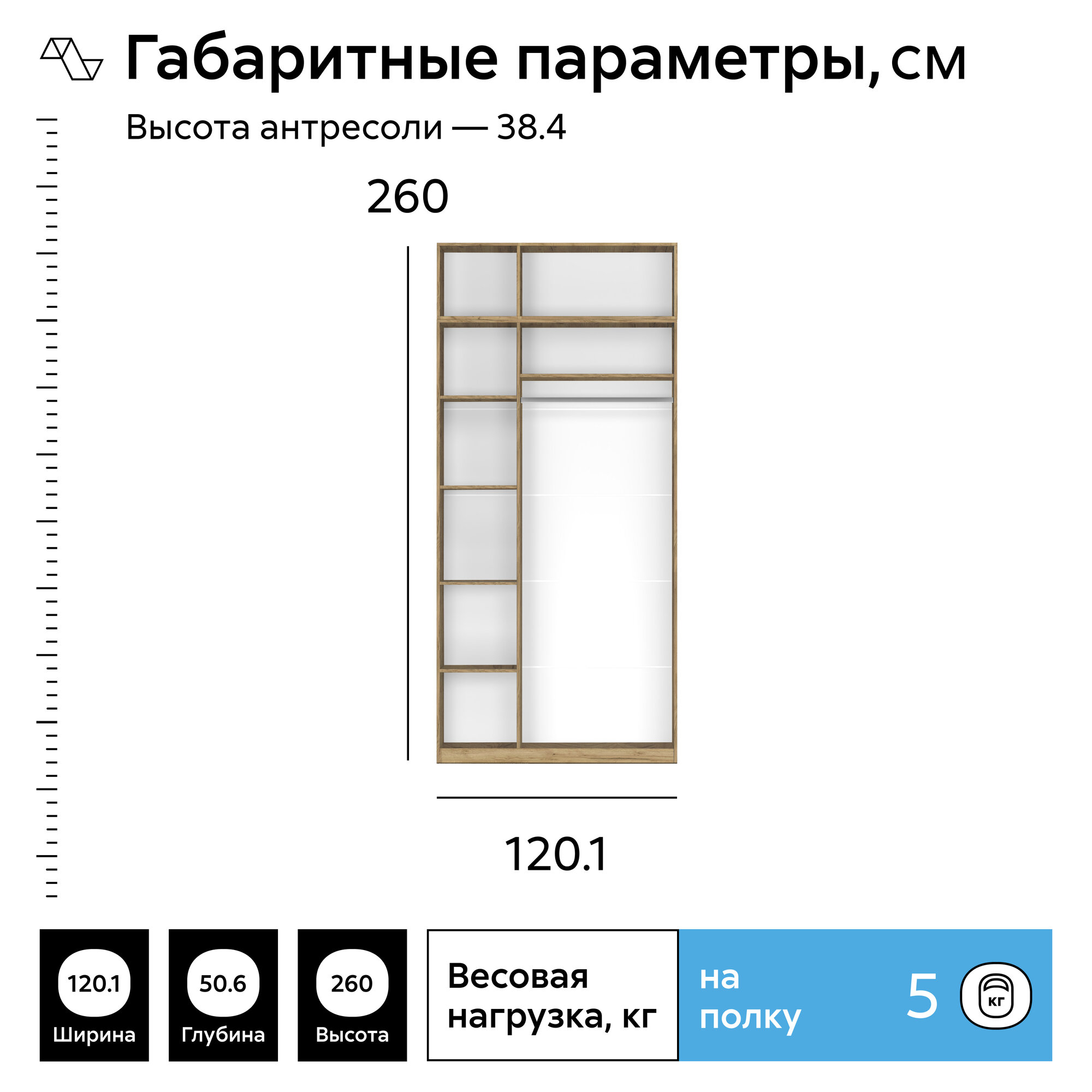 Шкаф для одежды распашной Нонтон Луас, с антресолью, 120 см, 7 полок и штанга, дуб золотой 24 990 ₽