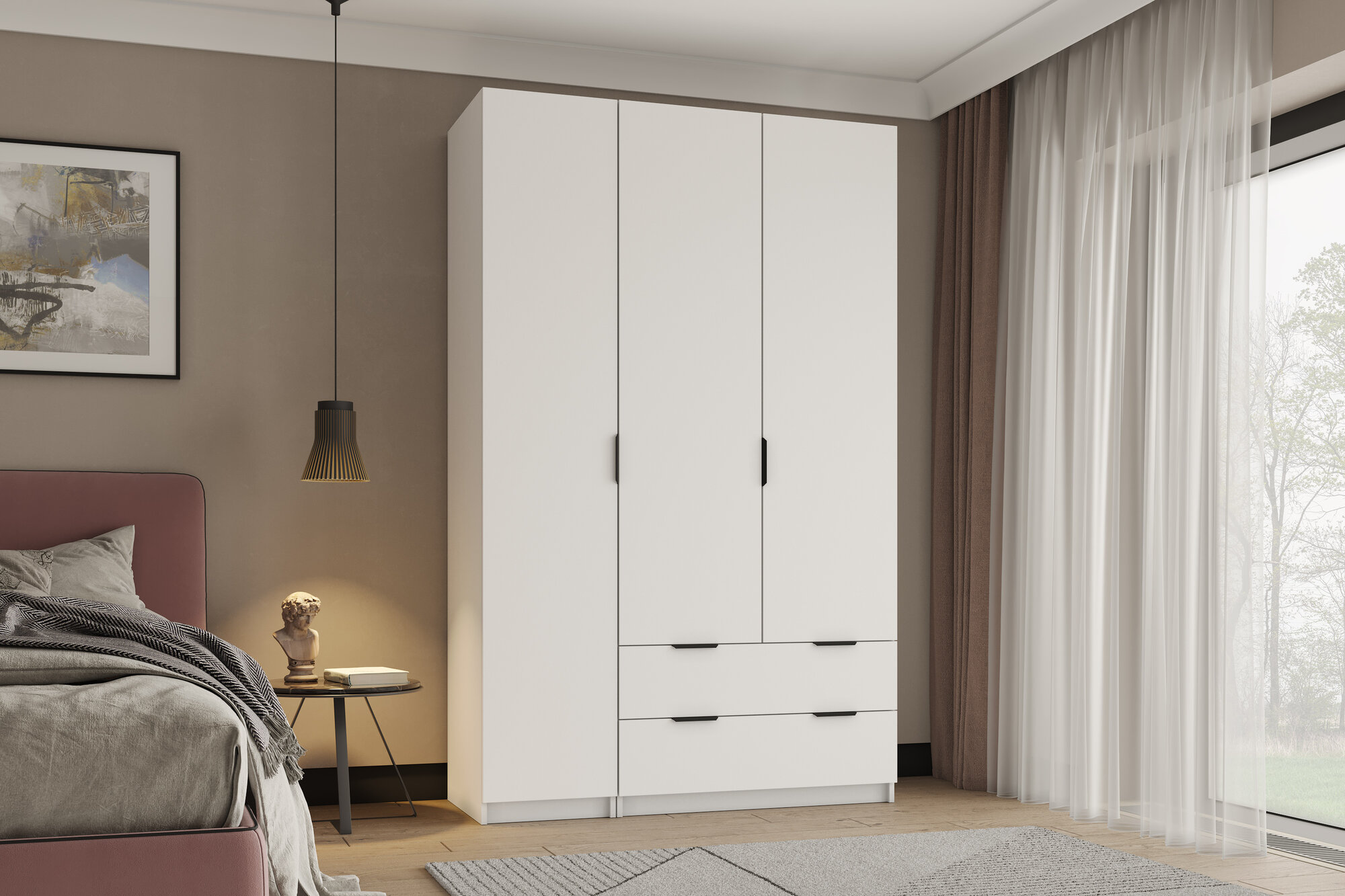 Шкаф для одежды распашной Нонтон Луас, 120 см, 7 полок и штанга, белый глянец