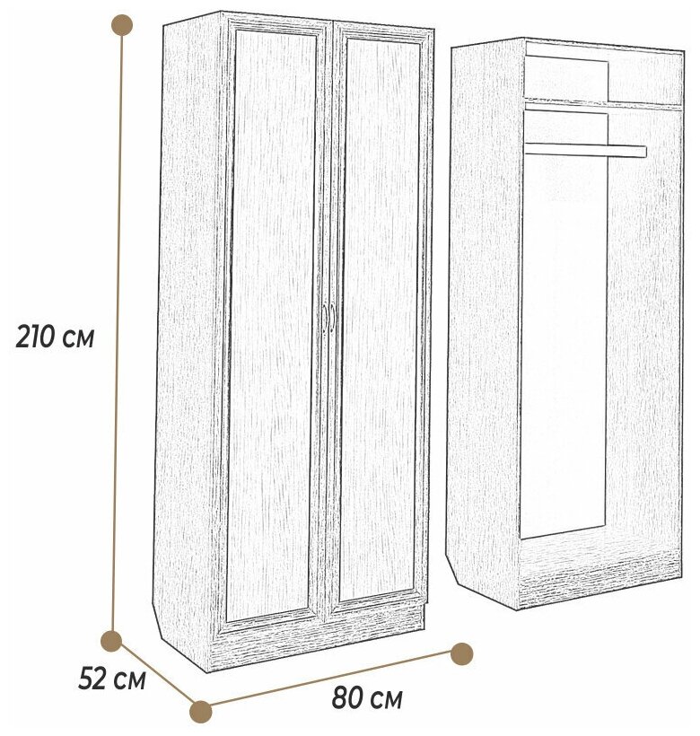 Шкаф распашной, гардероб, шкаф для одежды ШК-2 80/210/52 см Дуб молочный