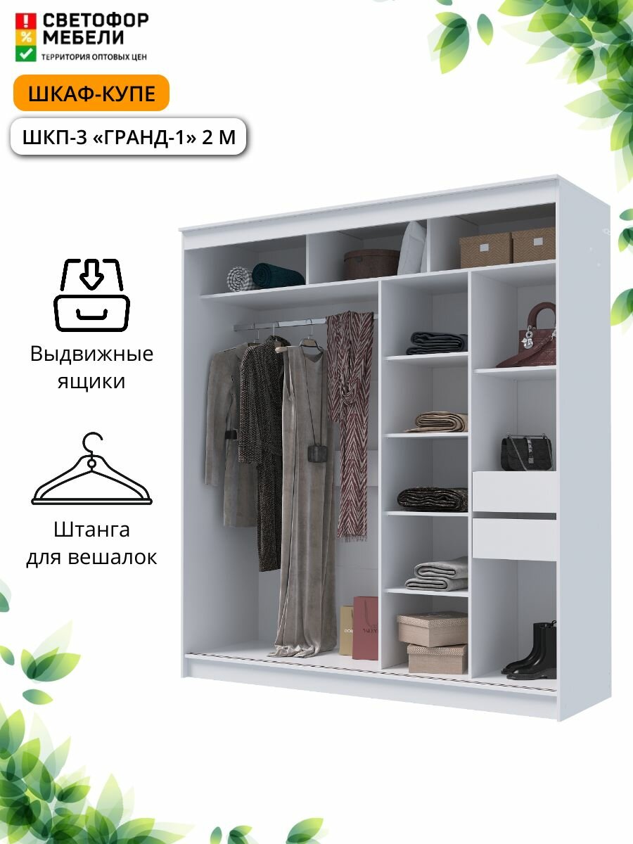 10 цен на Шкаф-купе Мебельный рай ШКП 3 Гранд 1 с 2-мя зеркалами 2002х2200х615, Белый гладкий/Дуб вотан