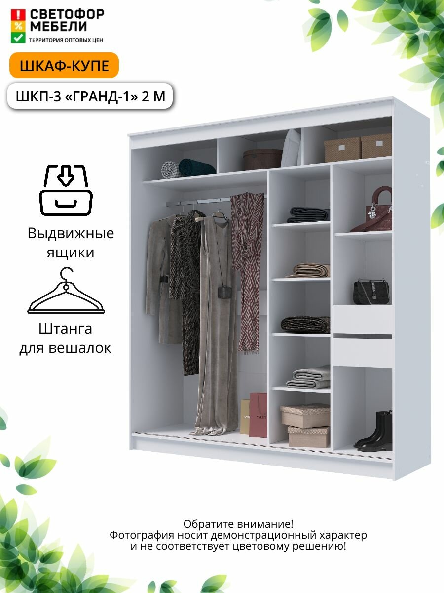 Шкаф-купе Мебельный рай ШКП 3 Гранд 1 без зеркал 2002х2200х615, Белый гладкий/Графит/Лакобель белый 34 780 ₽
