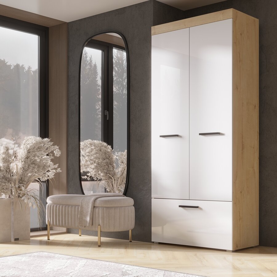 Шкаф распашной с выдвижным ящиком Бастон 0.9 Эра Дуб Вотан / Белый гладкий информация:
