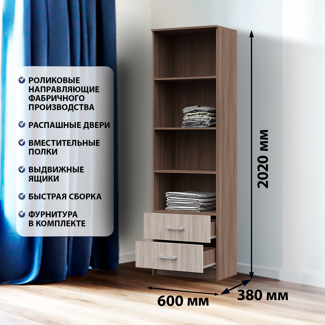 10 цен на Распашной шкаф для одежды Машенька ШК-201 ЛДСП (600х2020х380) шимо темный / шимо светлый